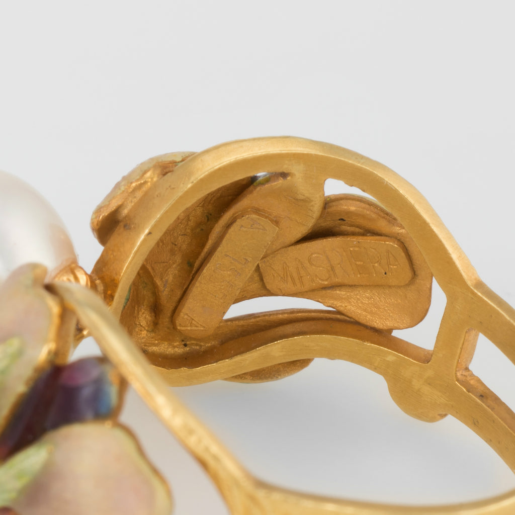 Masriera is a Spanish jeweler (since 1839) known for high quality craftsmanship, use of noble materials and gems along with superb enameling as conceived by the creative genius Lluis Masriera (1872-1958).
