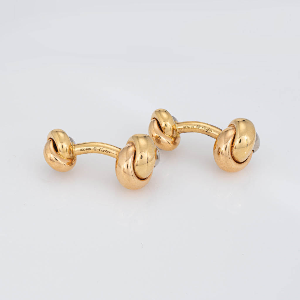 The stylish cufflinks highlight 'knots' to both ends crafted in 18k rose, white and yellow gold. The cufflinks weigh a heavy 21 grams. The high-quality cufflinks would make a great gift to a special someone. No Cartier box or papers.