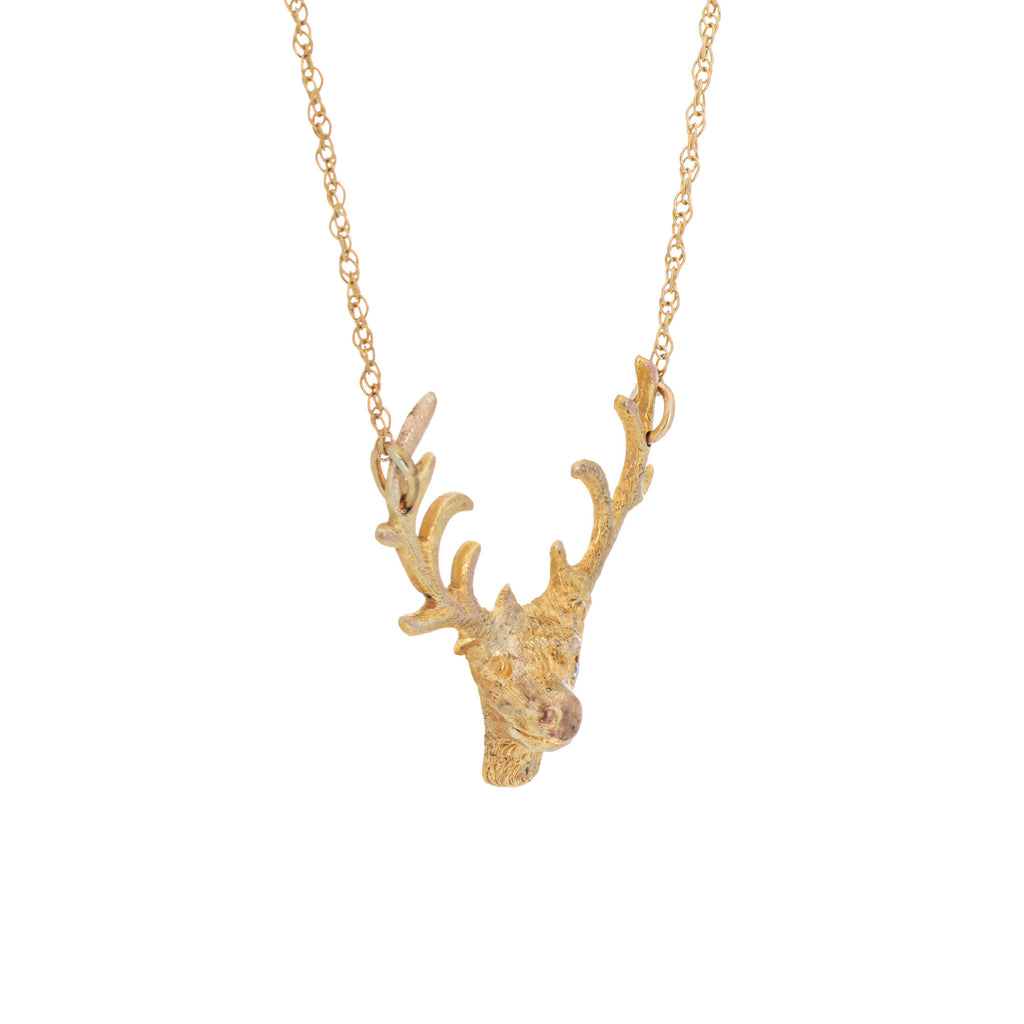 The beautifully detailed Deer bust features lifelike detail. Attached to a 19 inch chain (a later addition to the piece) the necklace makes a statement as a standout piece worn alone or layered with your fine jewelry from any era.