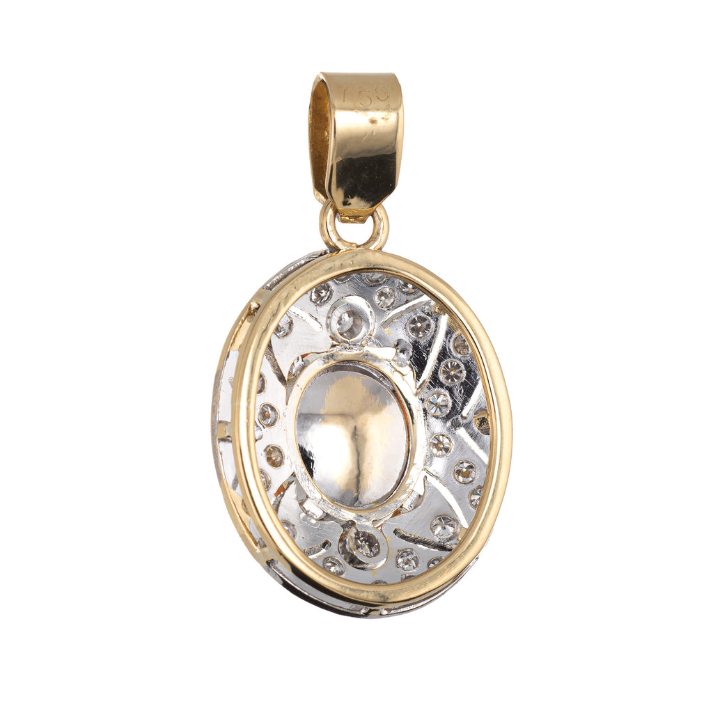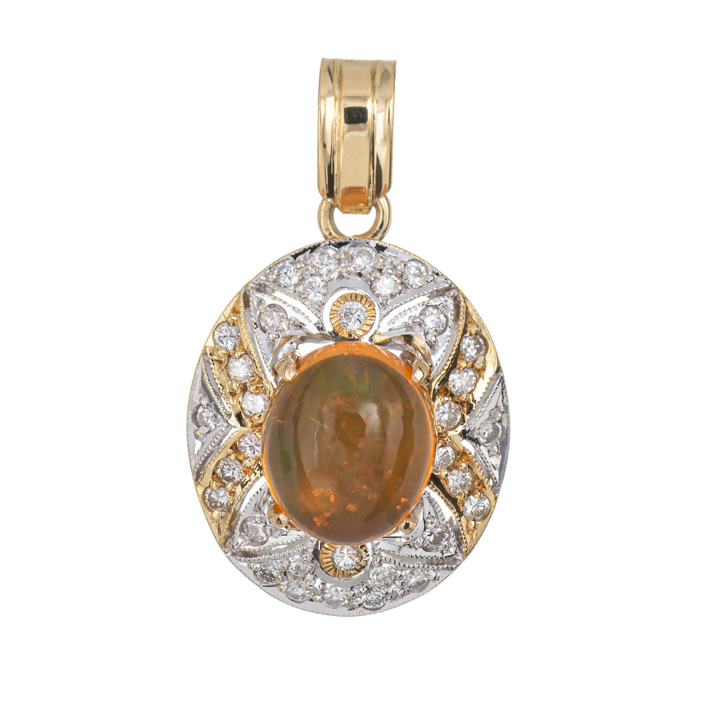 Finely detailed vintage opal & diamond pendant crafted in 14k yellow gold.