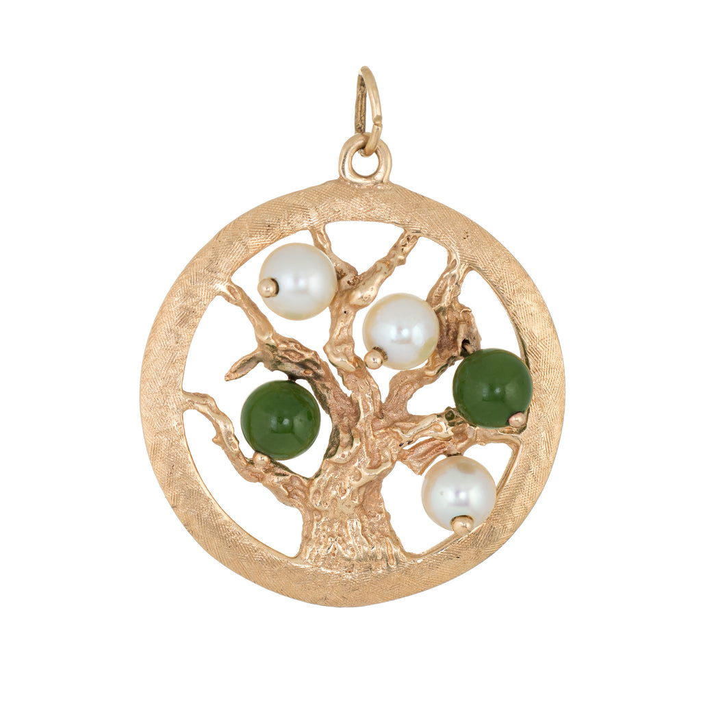 Finely detailed vintage Tree of Life pendant (circa 1950s to 1960s) crafted in 14 karat yellow gold.