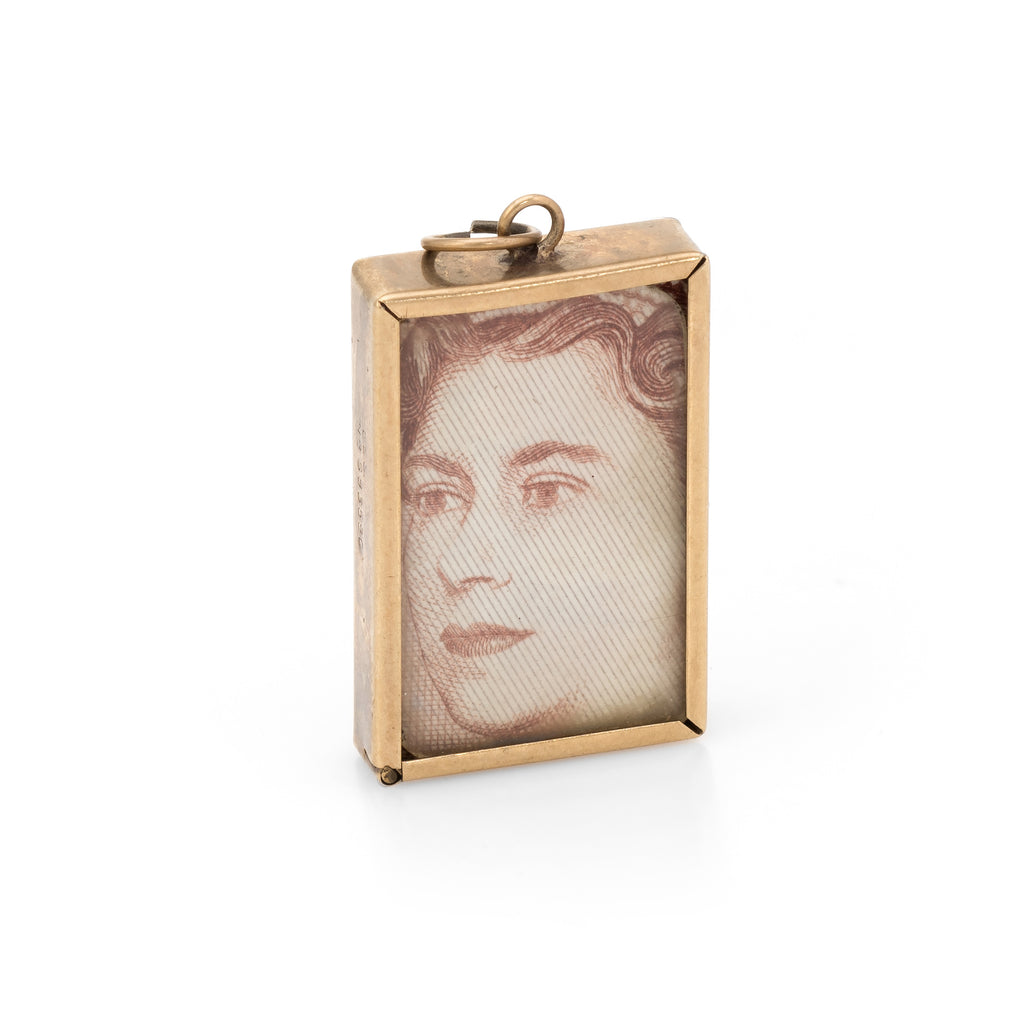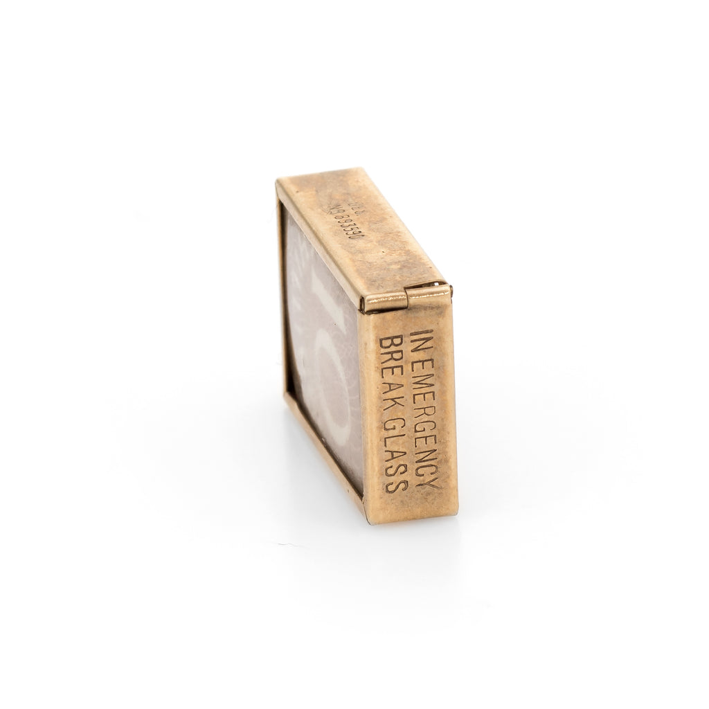 A 10 shilling note is folded and stored within the pendant. The pendant is engraved 'In Emergency Break Glass". Great for wear as a pendant or worn on a charm bracelet.