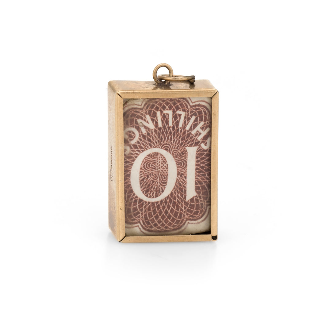 Vintage 10 Shilling Note Charm 9k Gold In Case Emergency English Money Pendant