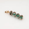 The acrylic tube is encased with small faceted round cut emeralds. The 'Shaker' pendant features a diamond set coiled design. The bale measures 3mm and can accommodate a thin to medium thick chain. The pendant is great worn alone as a statement piece or layered.