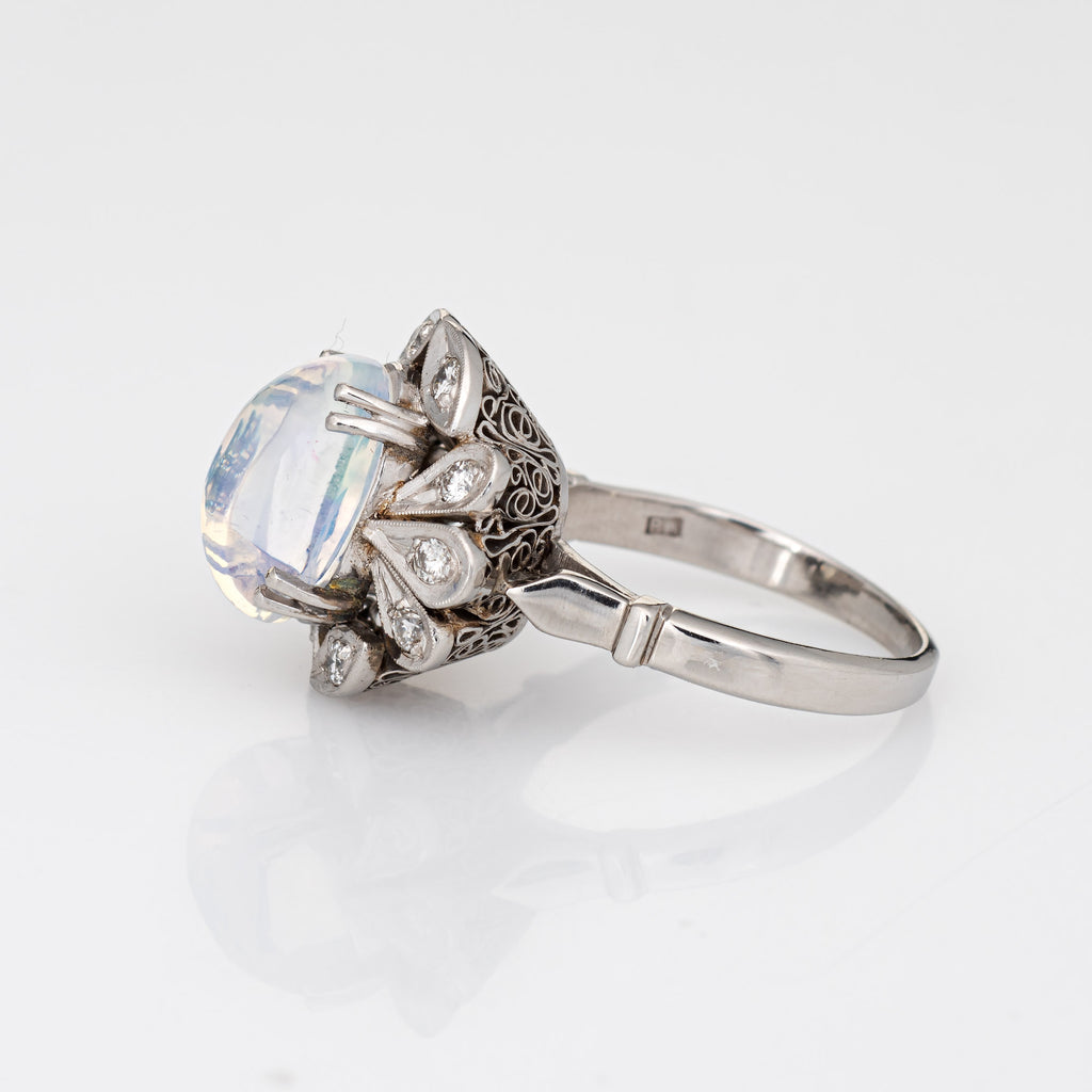 Stylish natural jelly opal & diamond cocktail ring crafted in 900 platinum.