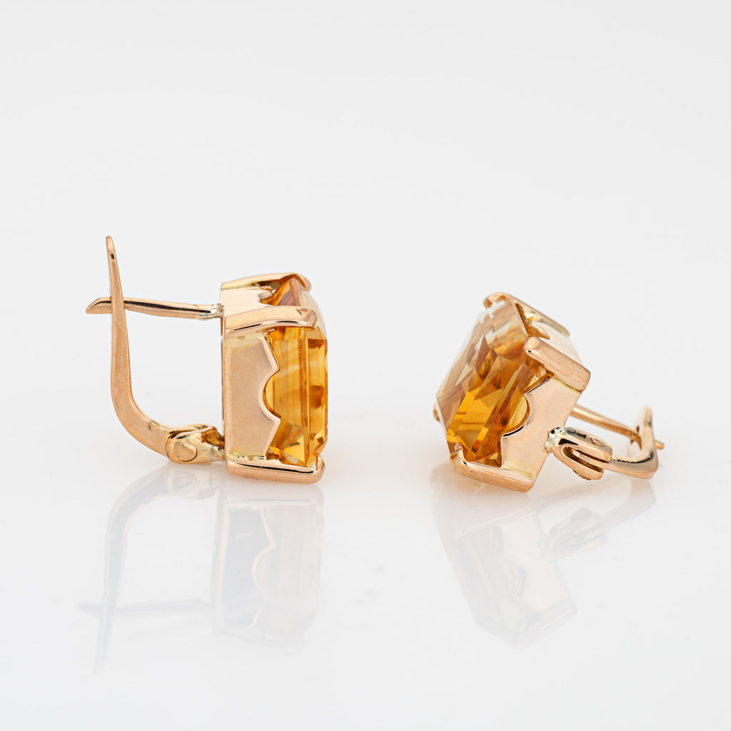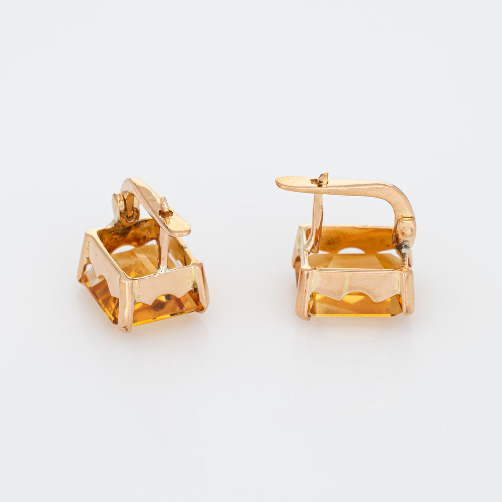 Elegant pair of retro vintage citrine square stud earrings crafted in 14k rose gold (circa 1940s to 1950s).