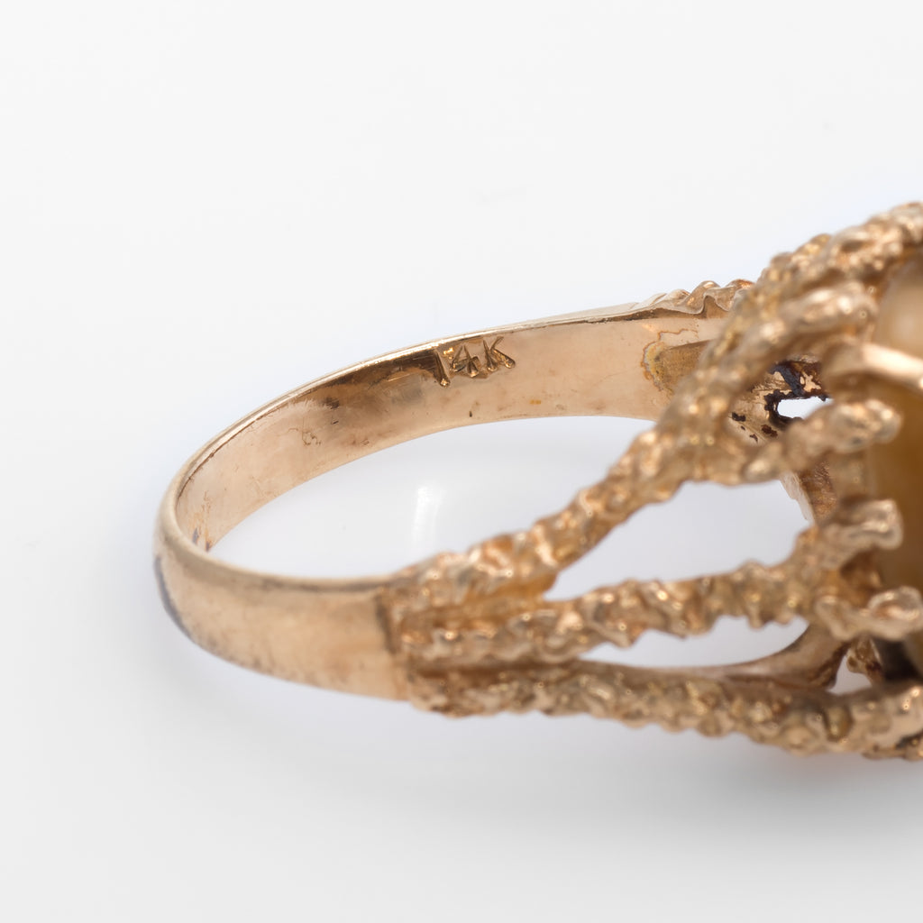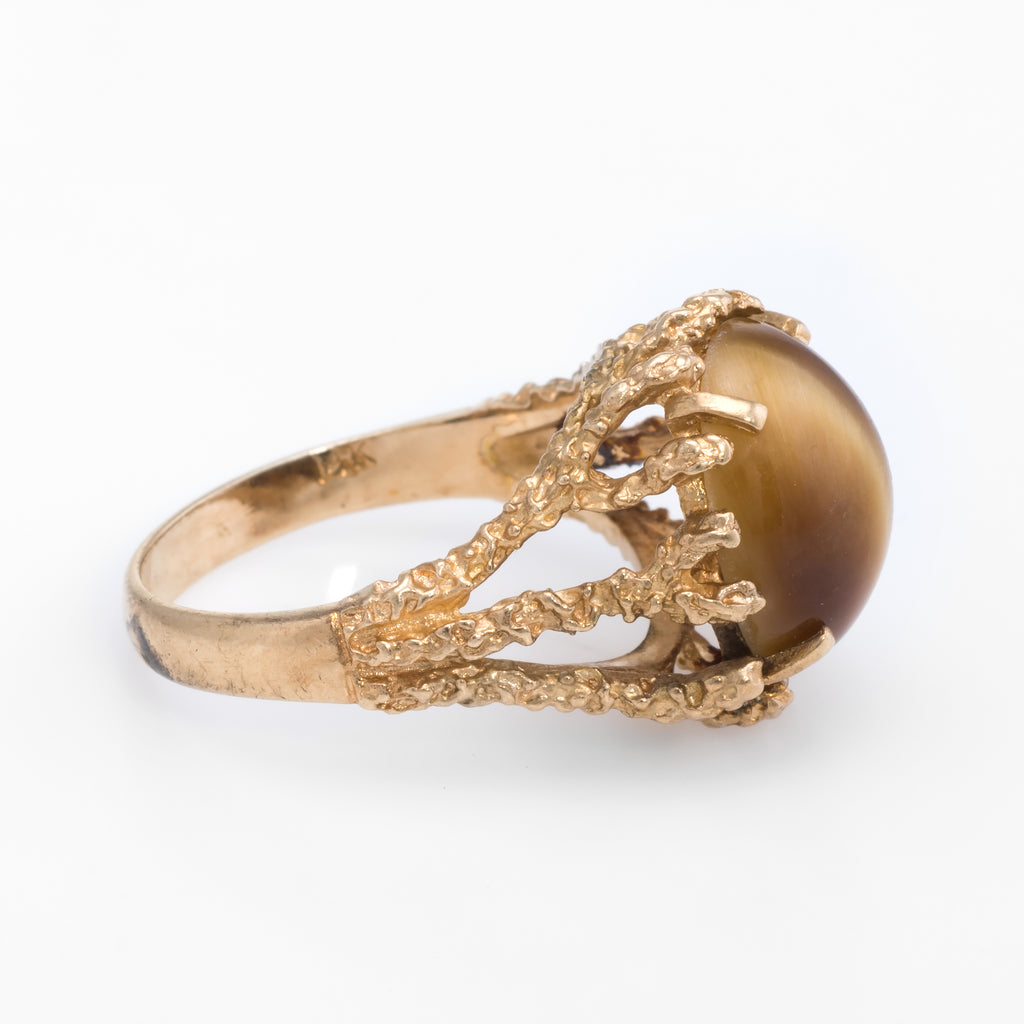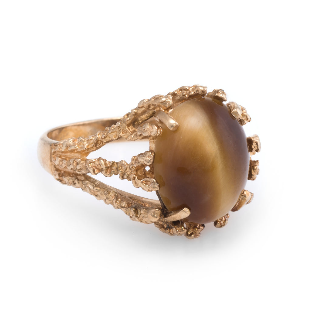 70s Vintage Tigers Eye Nugget Cocktail Ring 14k Yellow Gold Estate Fine Jewelry