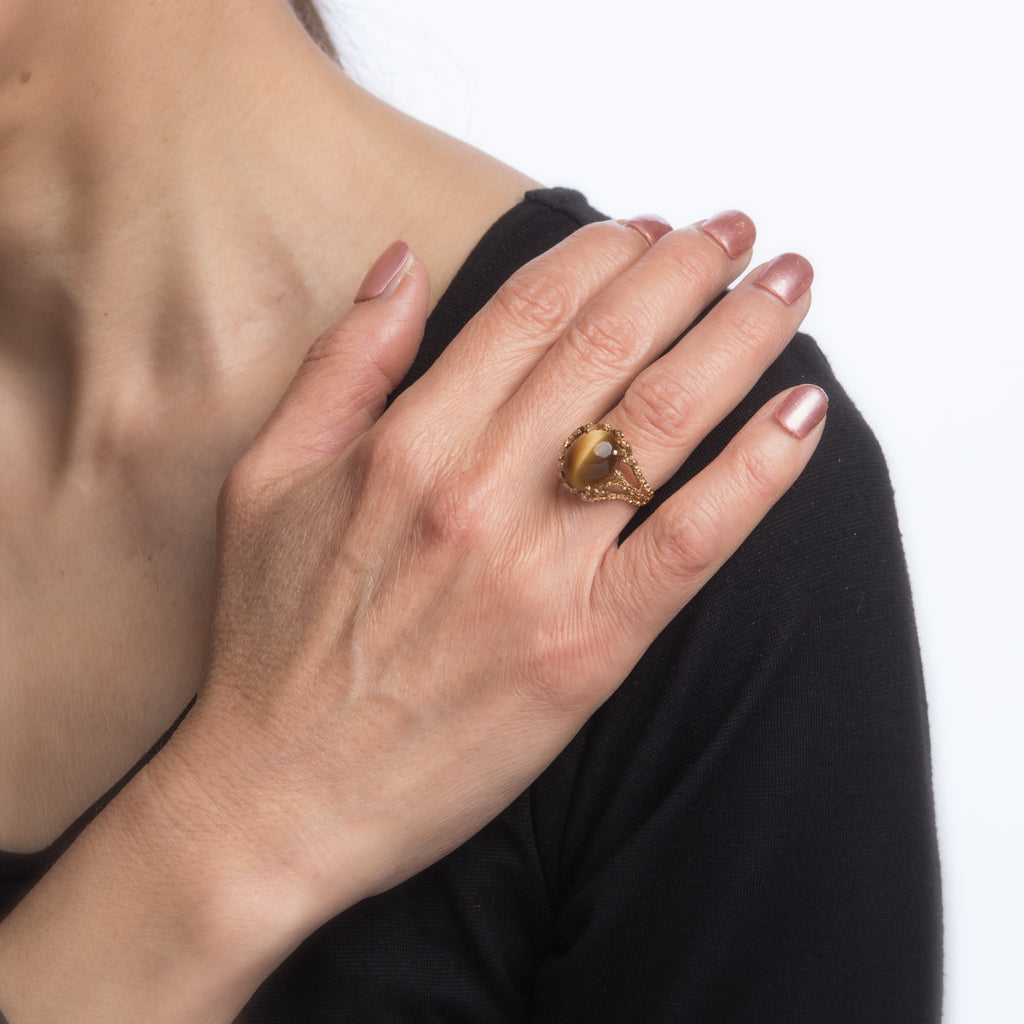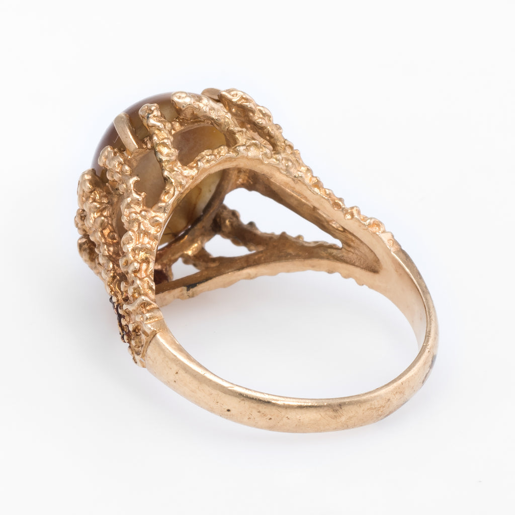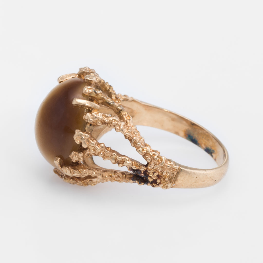 70s Vintage Tigers Eye Nugget Cocktail Ring 14k Yellow Gold Estate Fine Jewelry