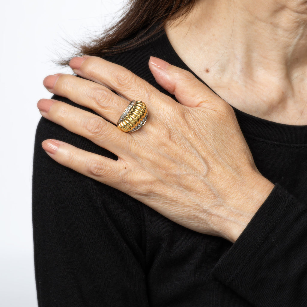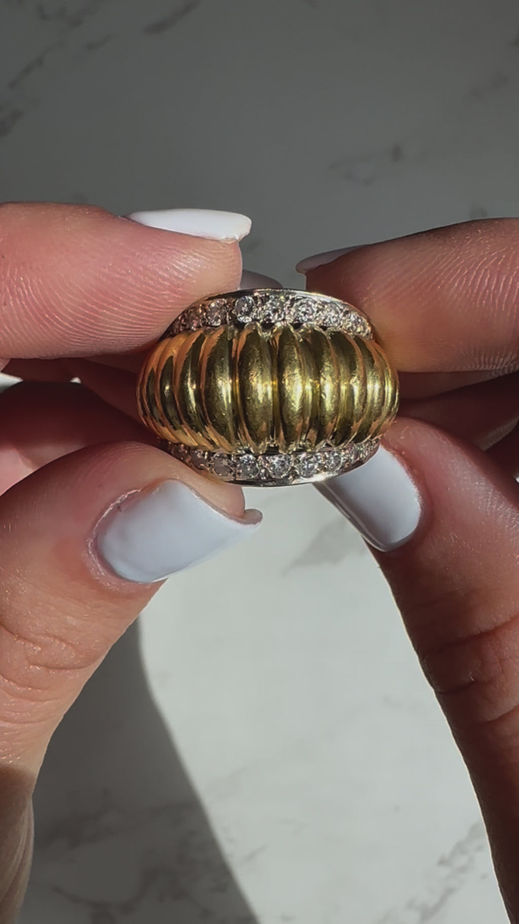 Stylish vintage fluted diamond dome ring (circa 1980s) crafted in 18 karat yellow gold.