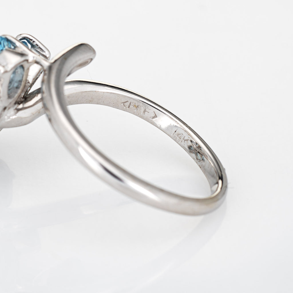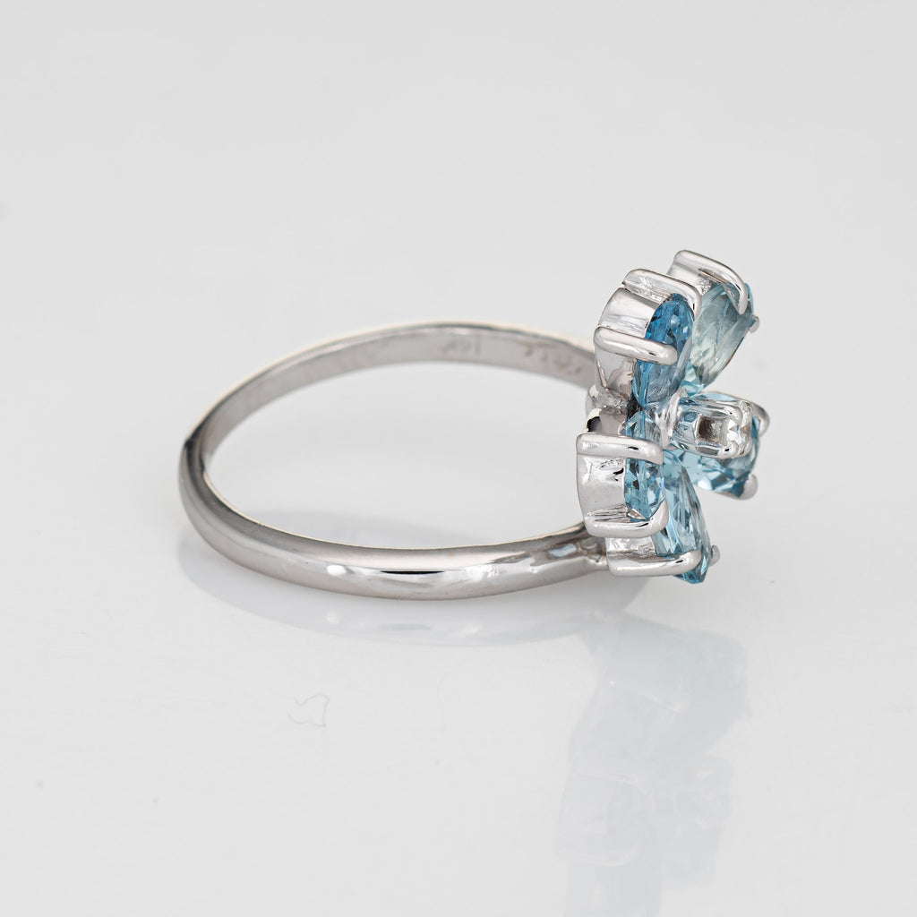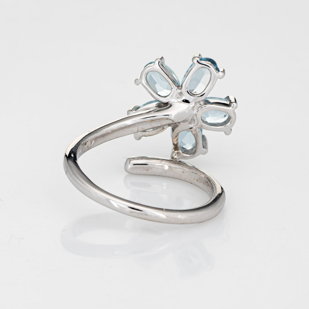 The clear-as-sky-blue aquamarines are set into a five petal floral design, a pretty setting with a nice pop of color for the spring and summer season. The medium rise ring (9.5mm - 0.37 inches) sits comfortably on the finger.