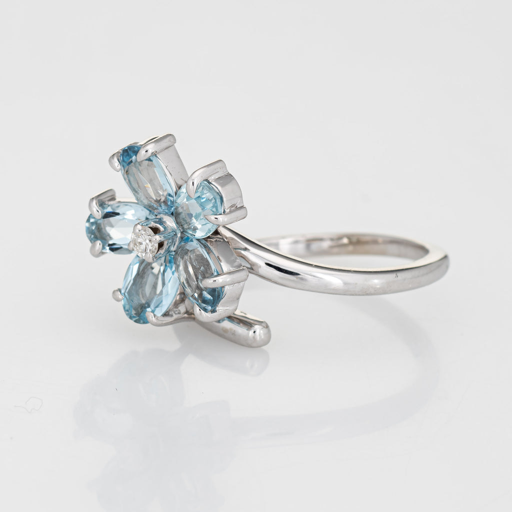Stylish aquamarine & diamond flower ring crafted in 14 karat white gold.