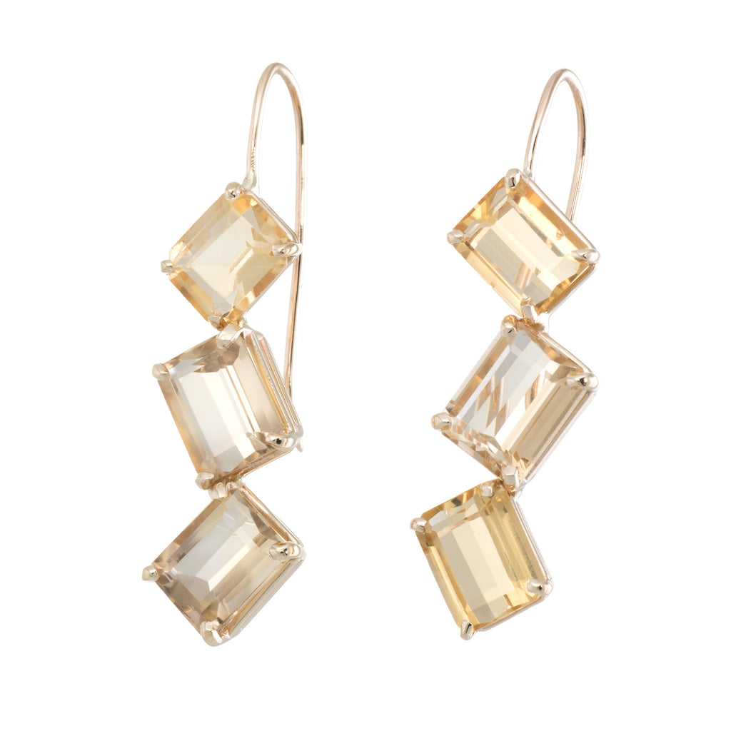 Emerald cut citrines measure 10mm x 8mm (4) and 10.25mm x 8.5mm (2). The total citrine weight is estimated at 23.25 carats. The citrines are in excellent condition and free of cracks or chips.