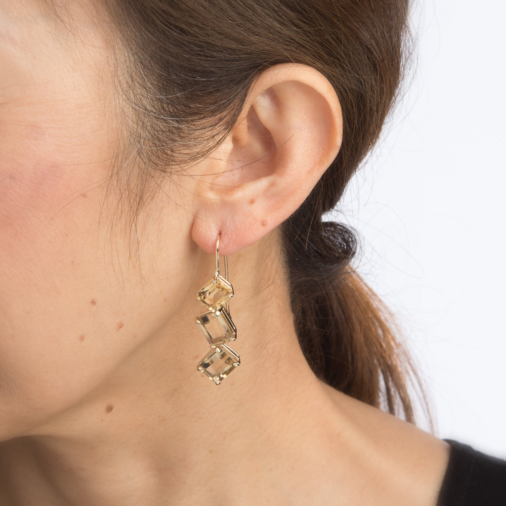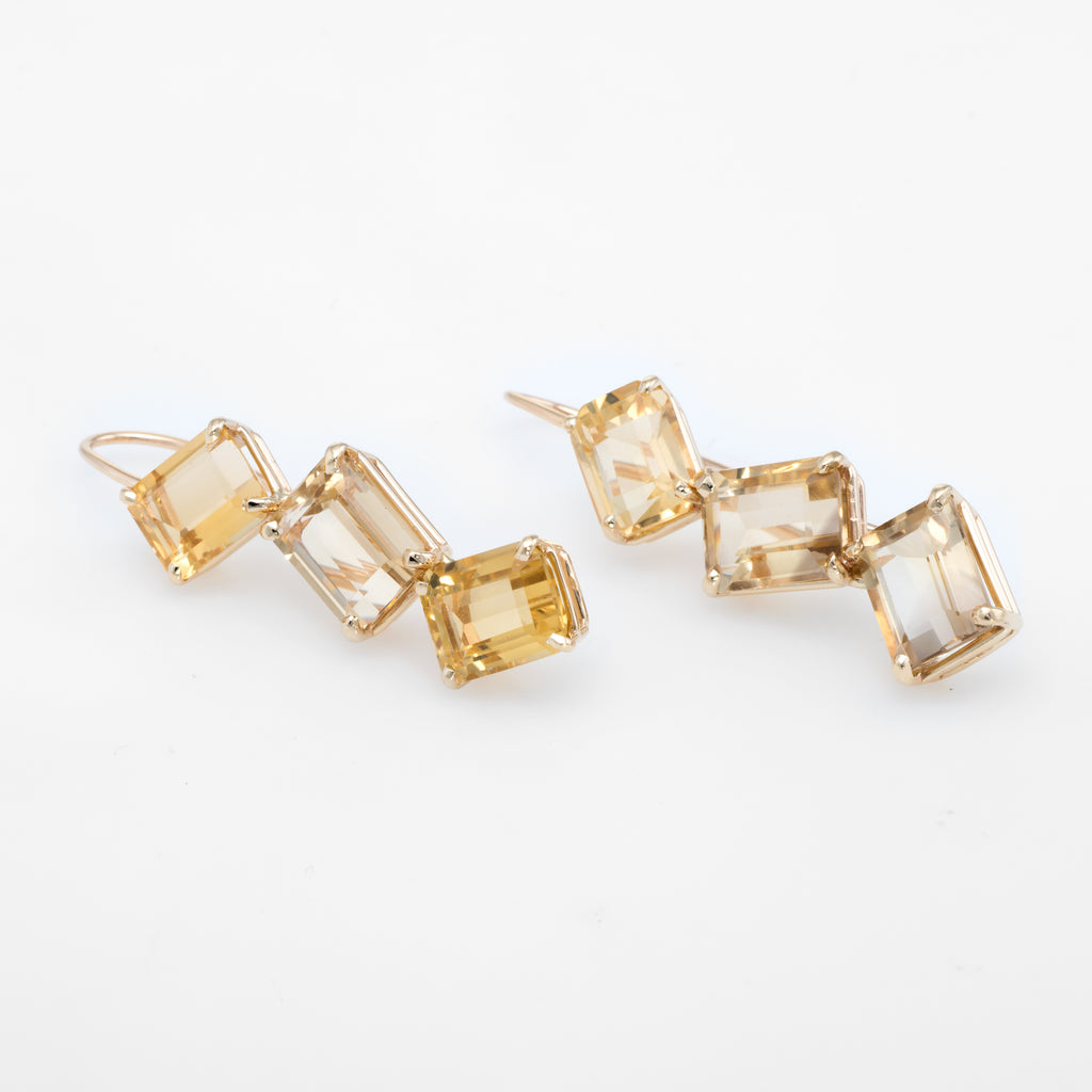Citrine Drop Earrings Jaggered Vintage 14k Yellow Gold