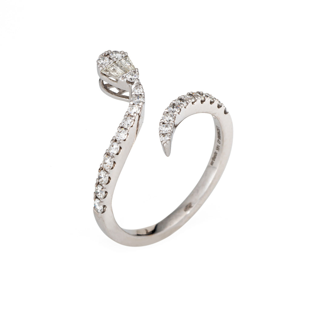 Diamond Snake Ring 14k White Gold Sz 6 Estate Fine Serpent Jewelry Mixed Cuts