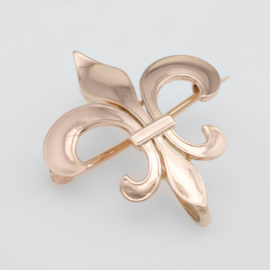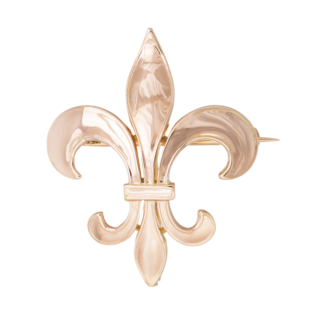 Finely detailed vintage Fleur de Lis brooch, crafted in 14 karat rose gold.