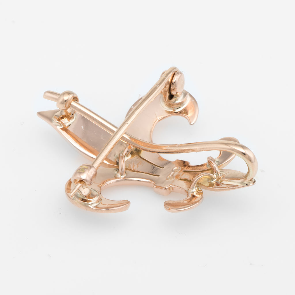 Metal & Hallmark:  14k rose gold. The brooch is hallmarked "14" for 14 karat gold.