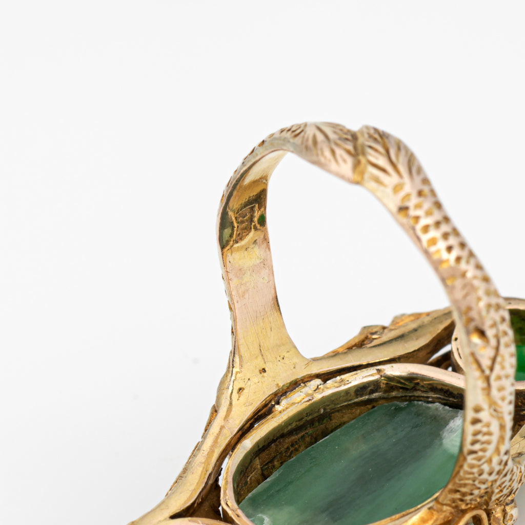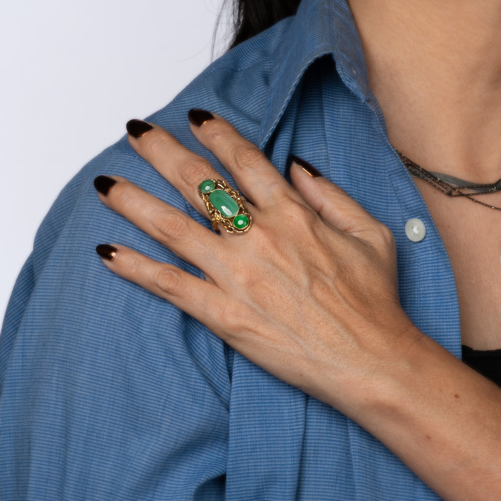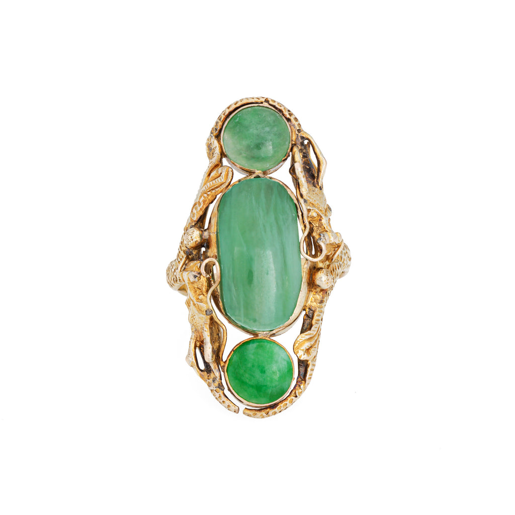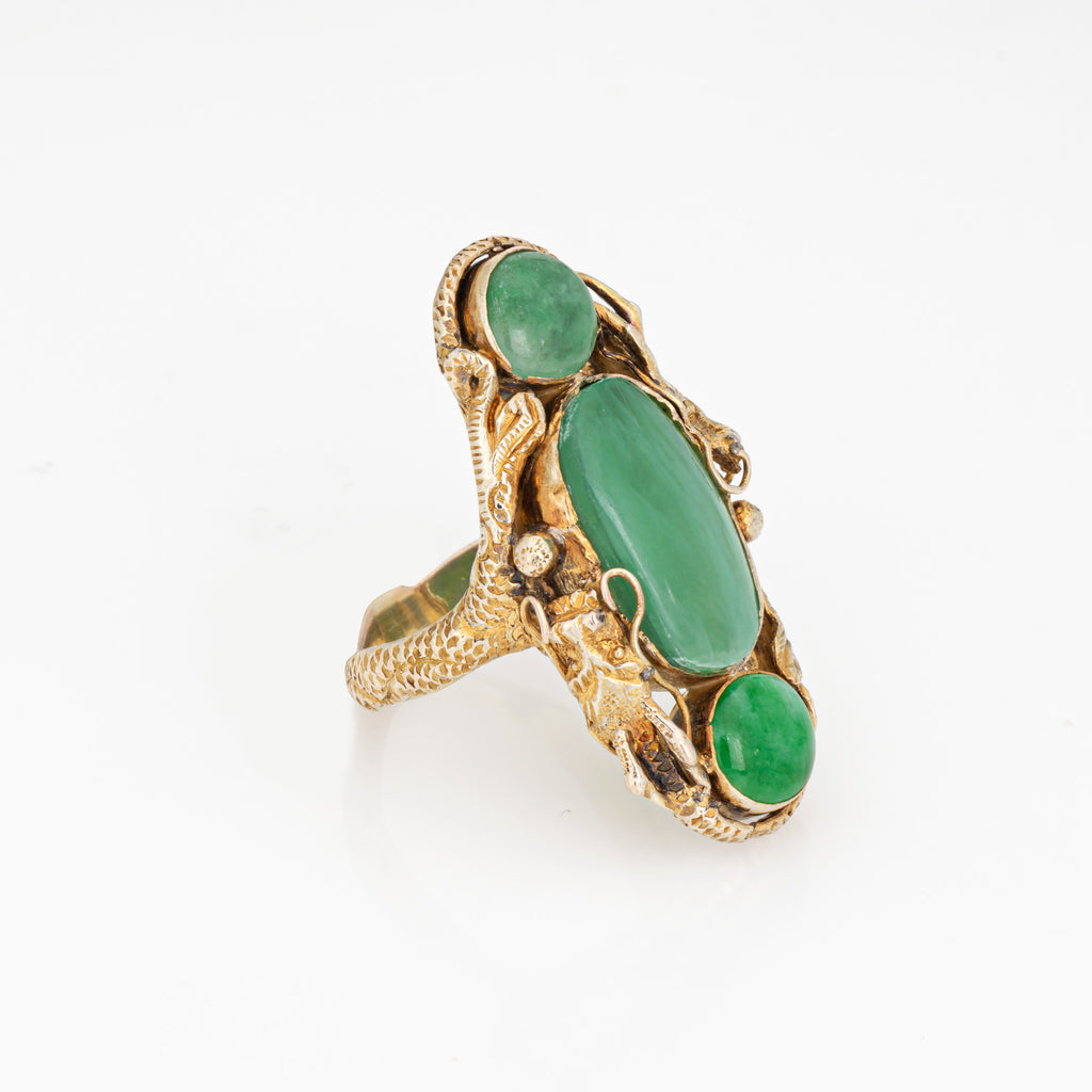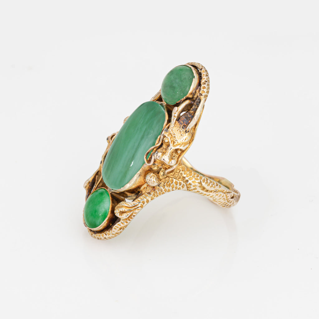 Jade Dragon Ring Vintage 10k Yellow Gold Long Cocktail Band Sz 7.5 Fine Jewelry