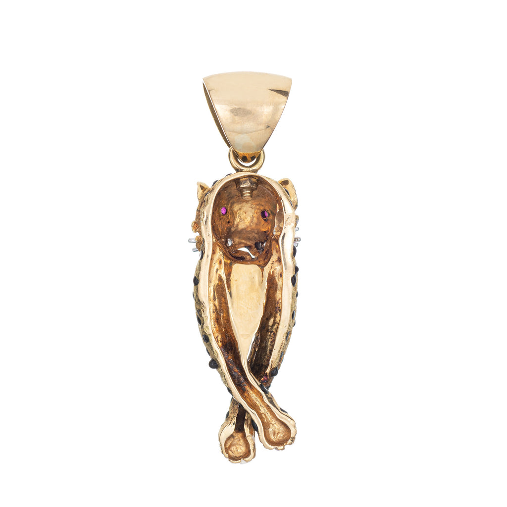 Finely detailed vintage leopard pendant crafted in 18k yellow gold (circa 1960s to 1970s).