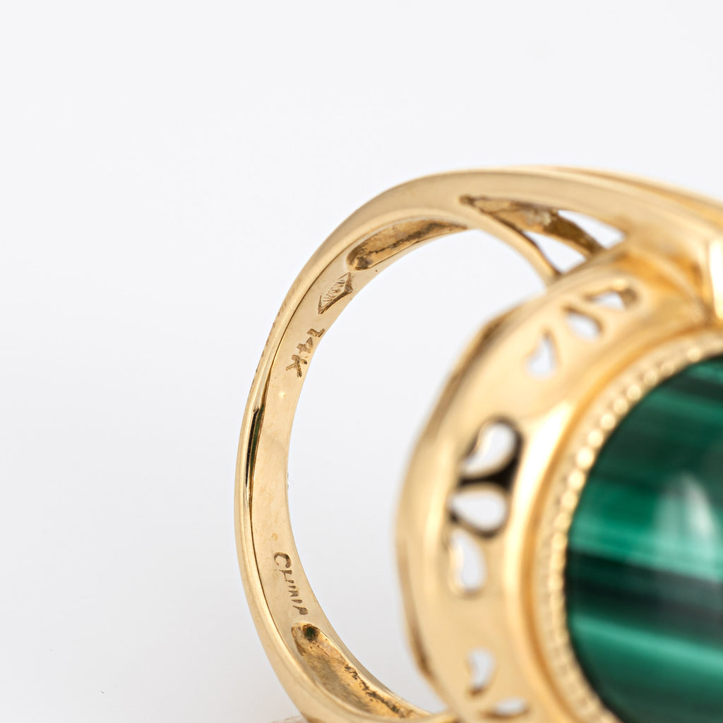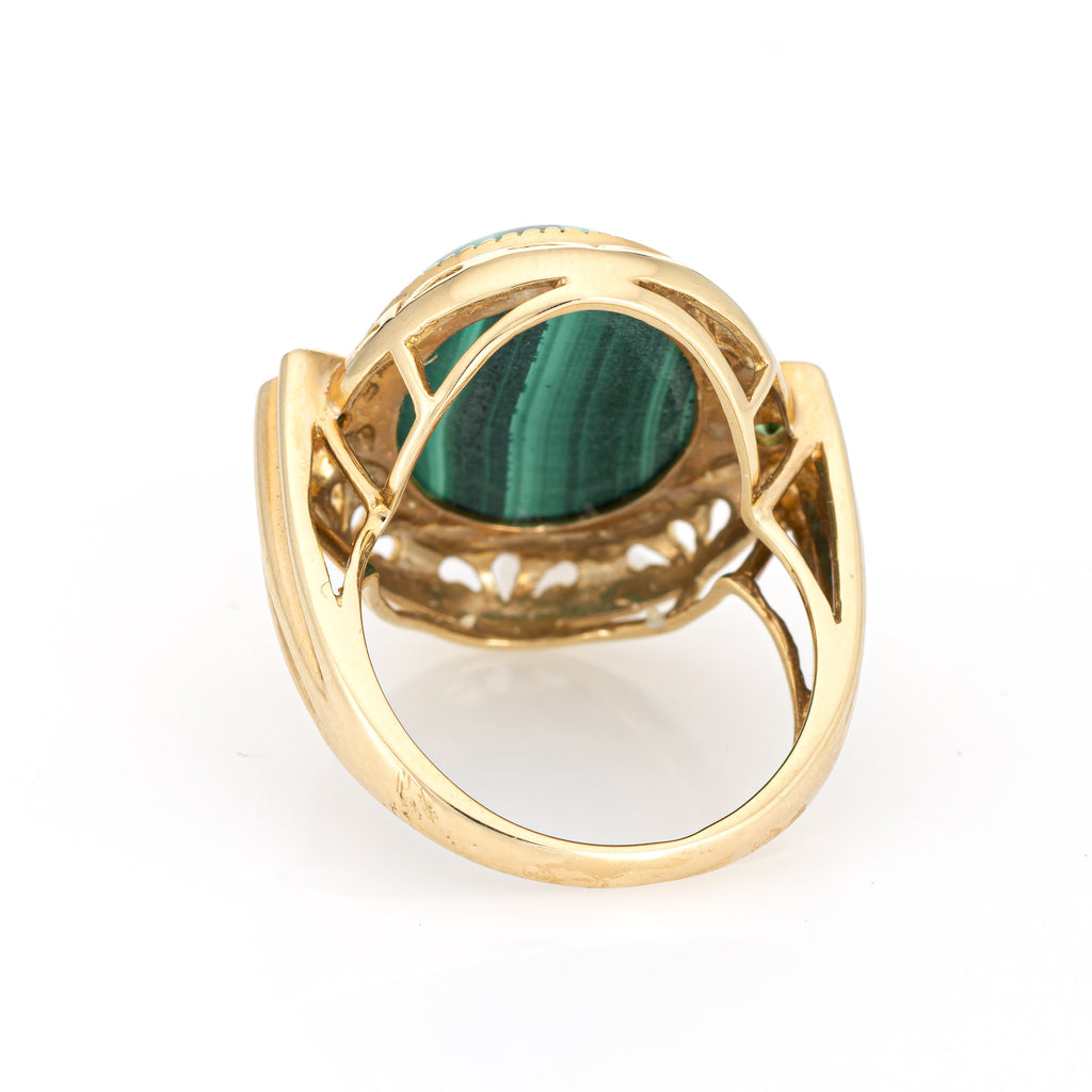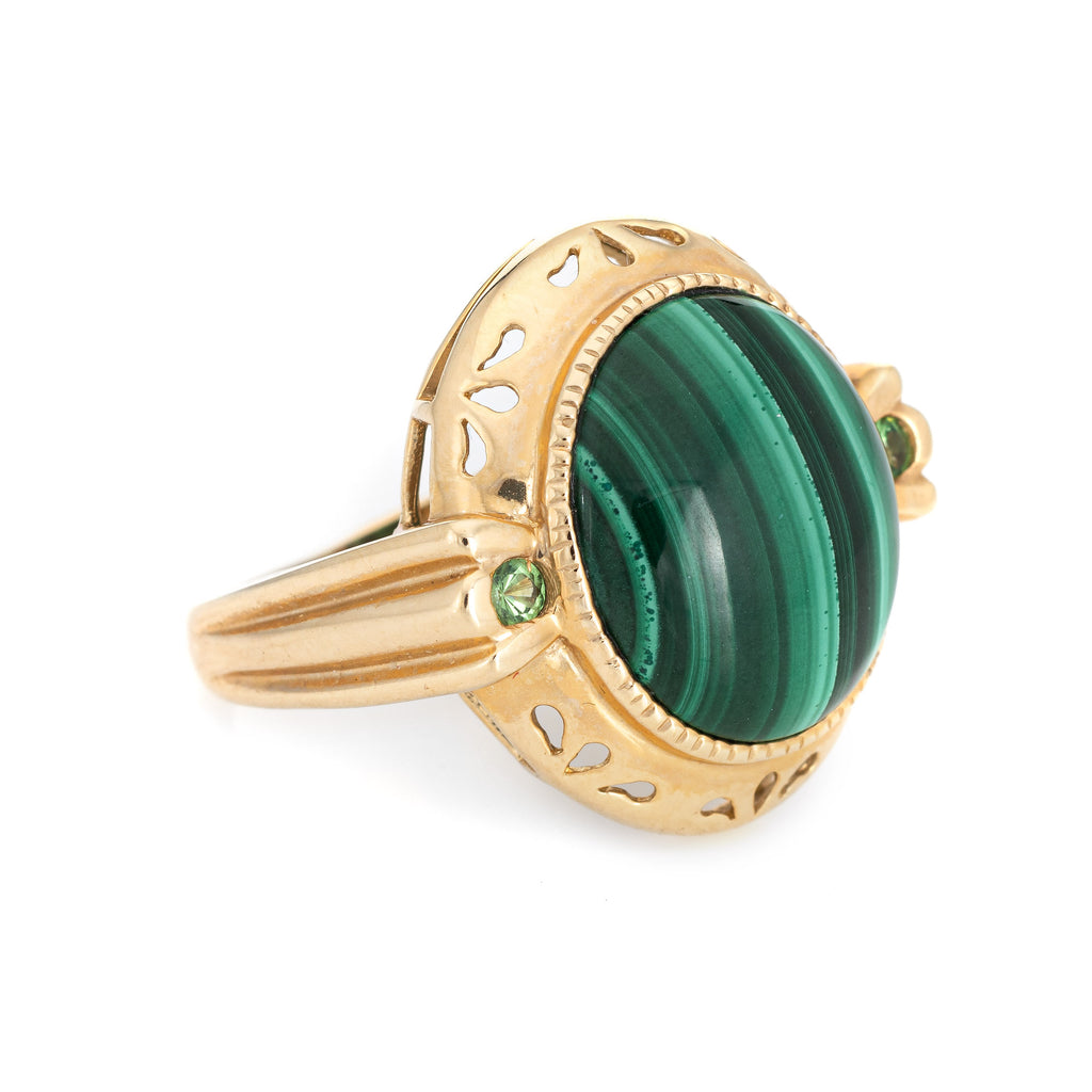 Stylish estate malachite & peridot cocktail ring crafted in 14 karat yellow gold.