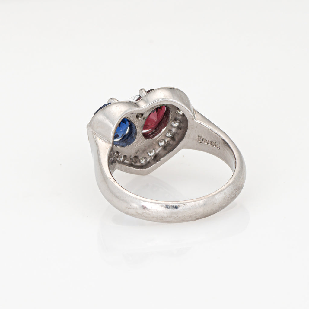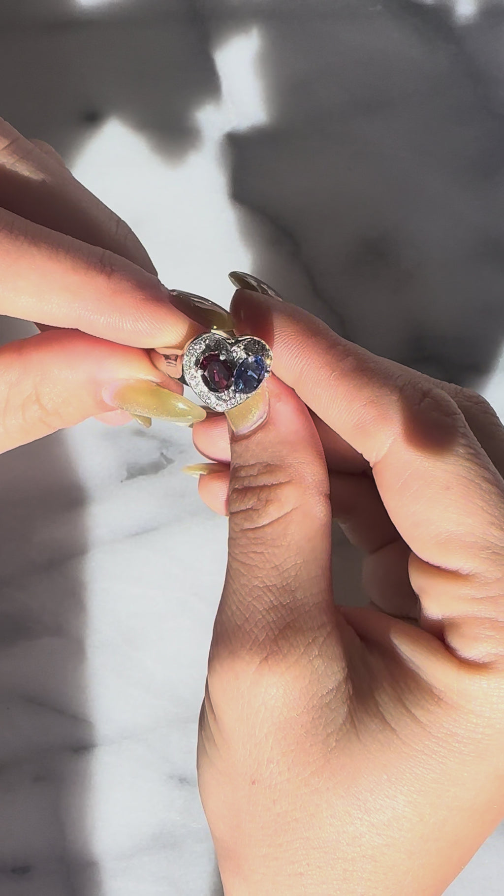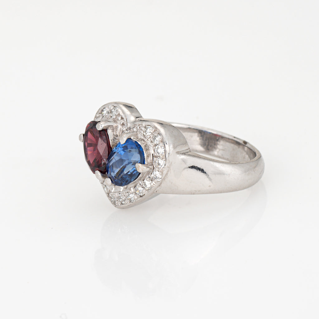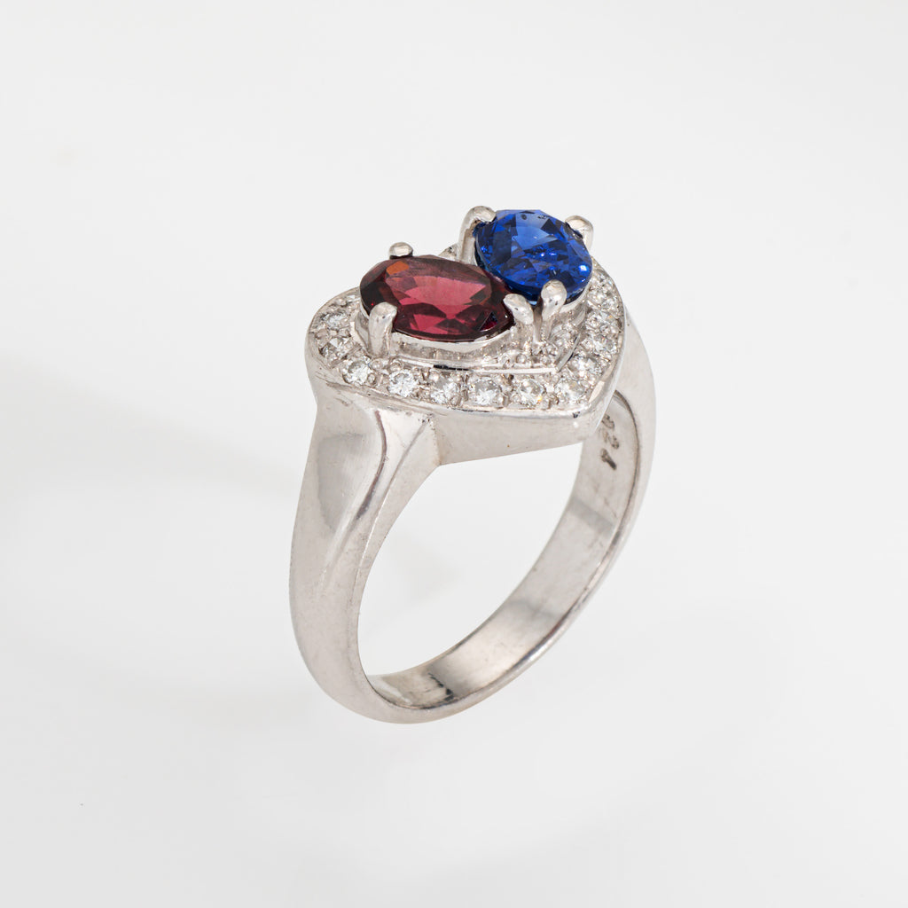 Sapphire Garnet Heart Ring Diamond Estate 6 Platinum Moi et Toi Fine Jewelry