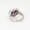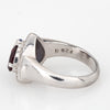 Stylish sapphire & garnet heart ring crafted in 900 platinum.