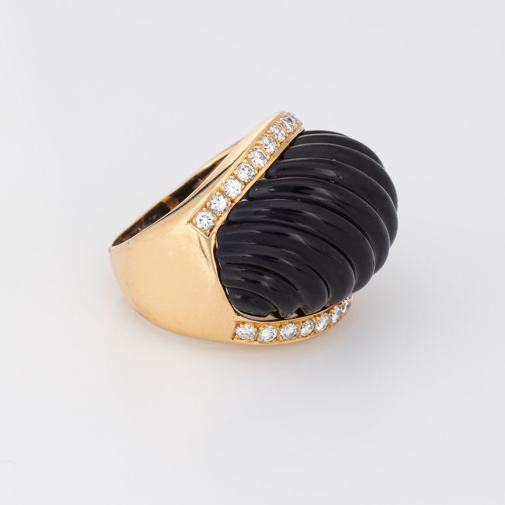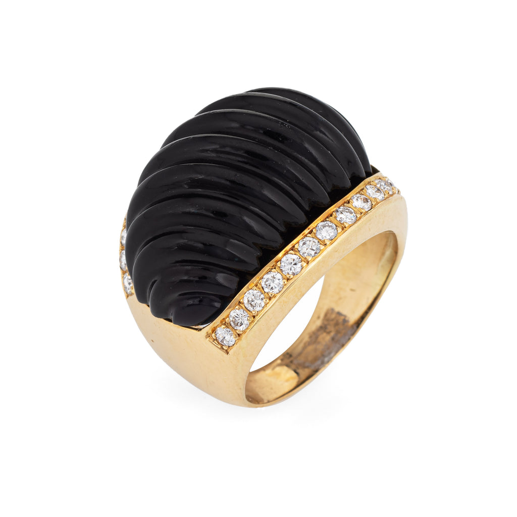 Stylish vintage fluted onyx & diamond cocktail ring (circa 1950s to 1960s) crafted in 18 karat yellow gold.