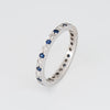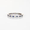 Stylish vintage sapphire & diamond eternity band crafted in 14 karat white gold.