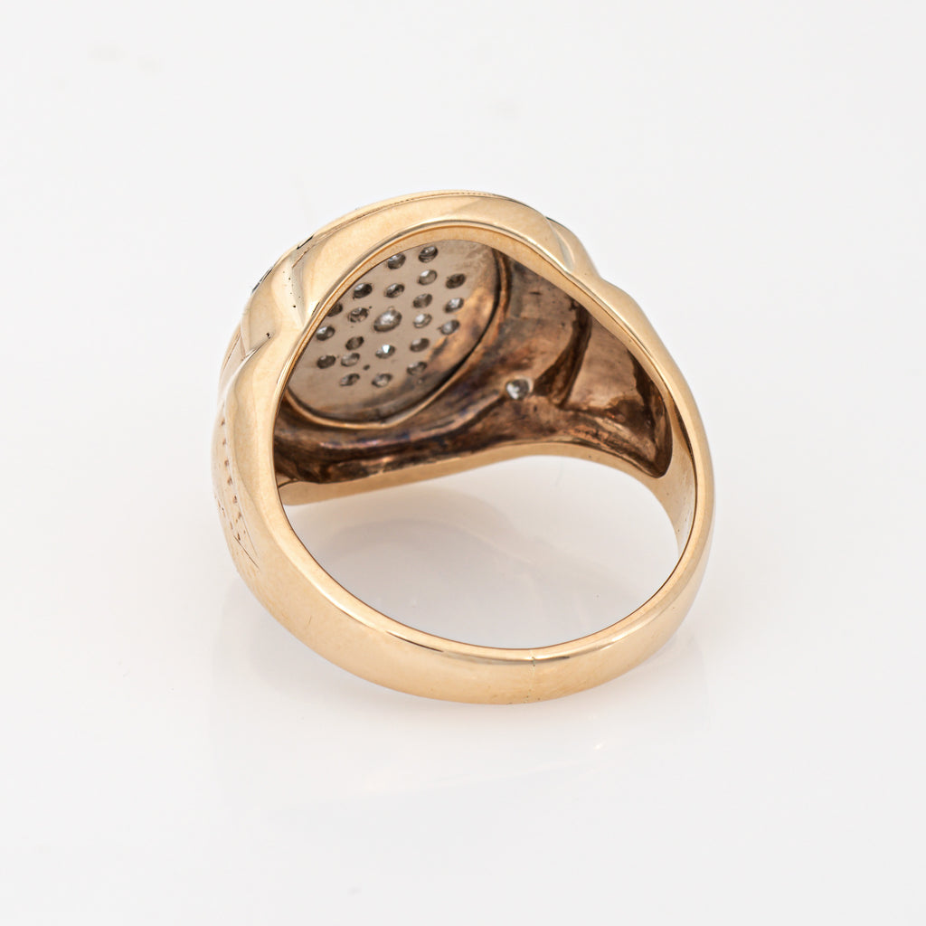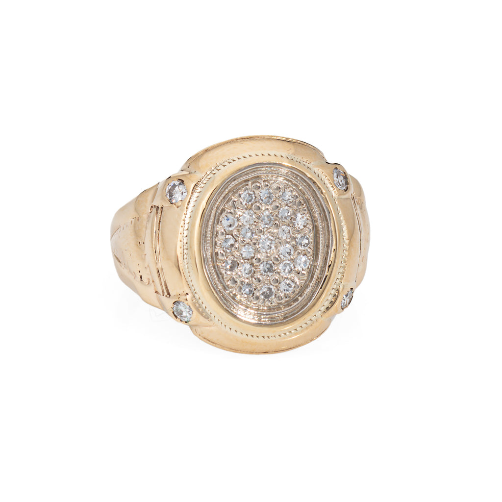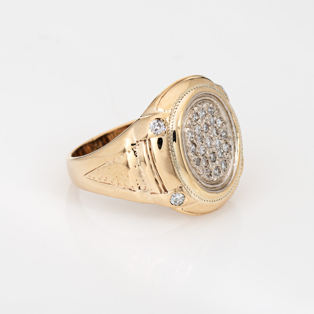 70s Vintage Oval Signet Ring Sz 7.5 Diamond 10k Yellow Gold Estate Fine Jewelry