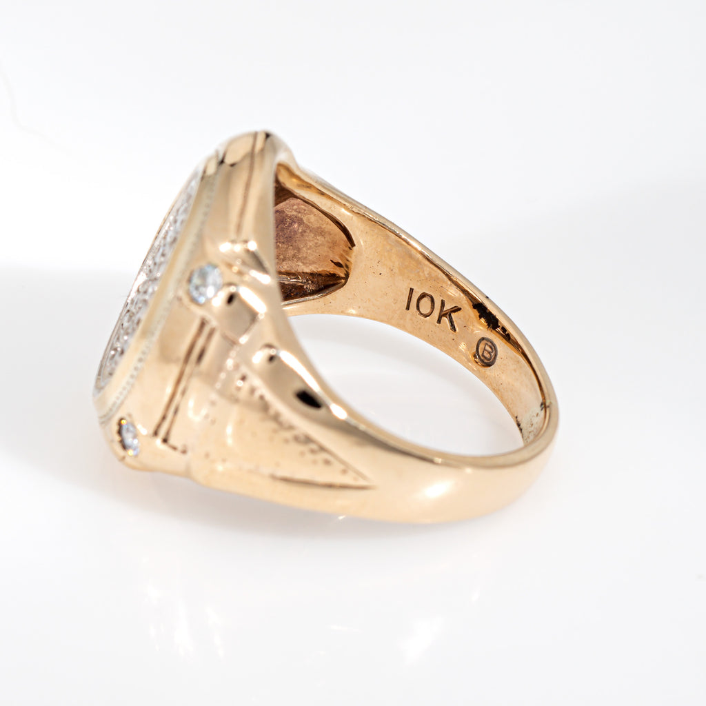 Metal & Hallmark: 10 karat yellow gold. The ring is hallmarked "10k"