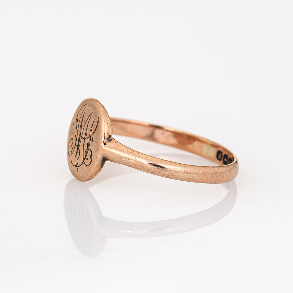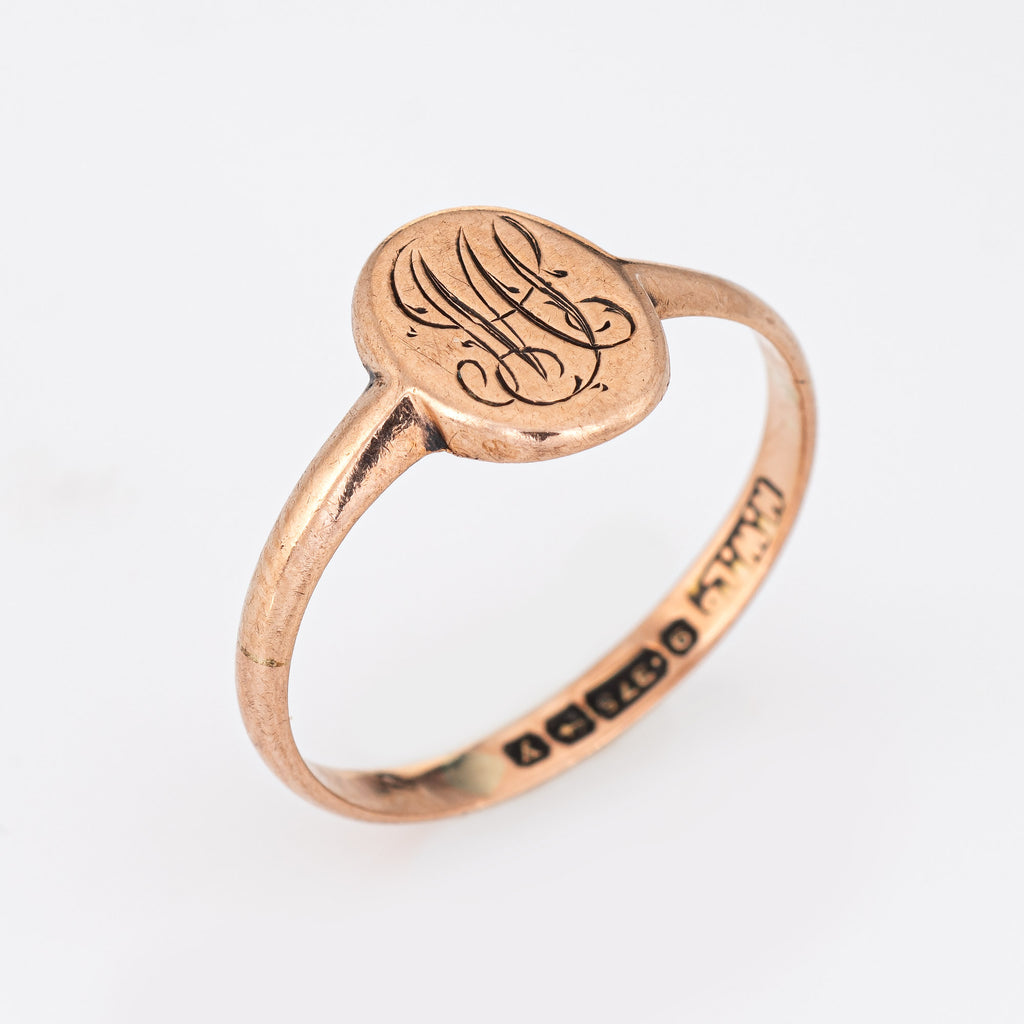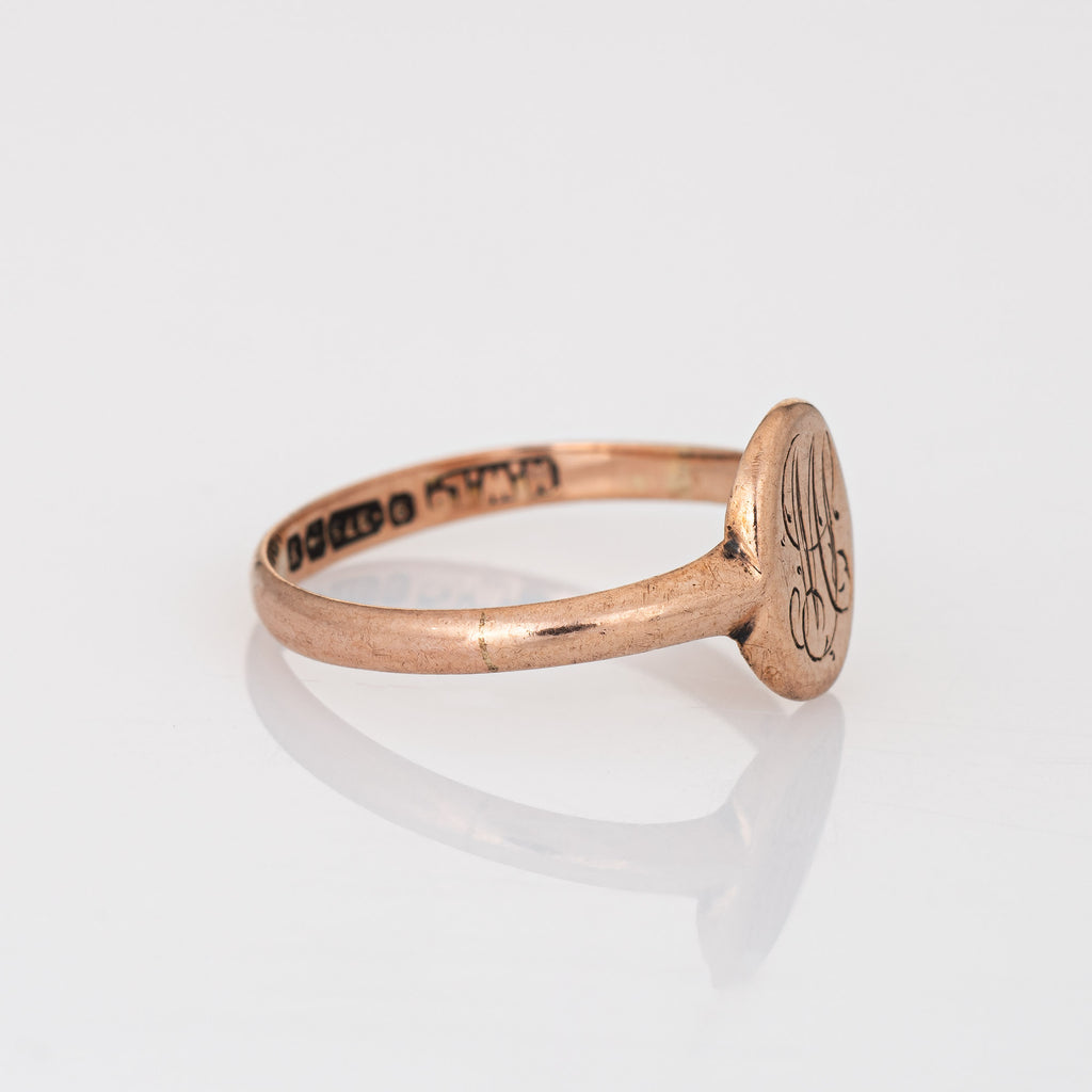 Lovely vintage Art Deco era small signet ring (circa 1923), crafted in 9 karat rose gold.