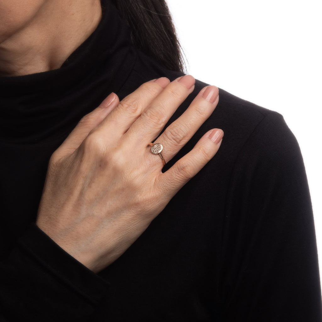Size & Measurements: The ring is a size 5 (sizable). The oval signet mount measures 8.5mm in length (0.33 inches) and 7.5mm wide (0.29 inches) rising 1.25mm from the finger.