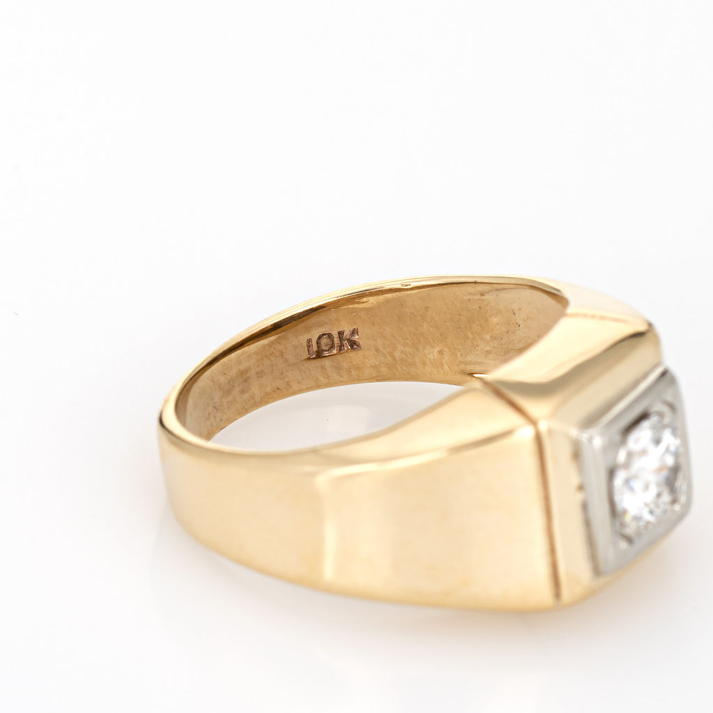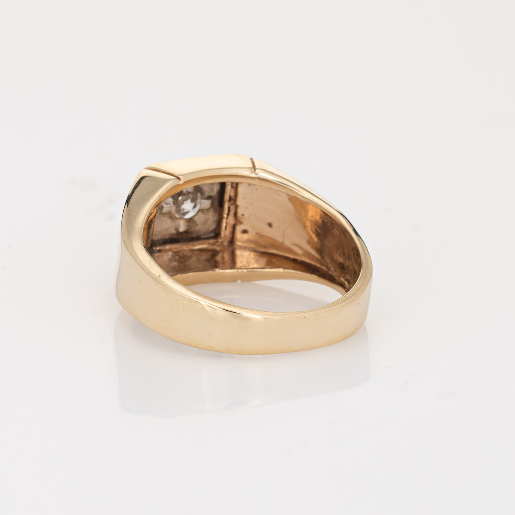 Stylish vintage diamond signet ring (circa 1970s to 1980s) crafted in 10 karat yellow gold.