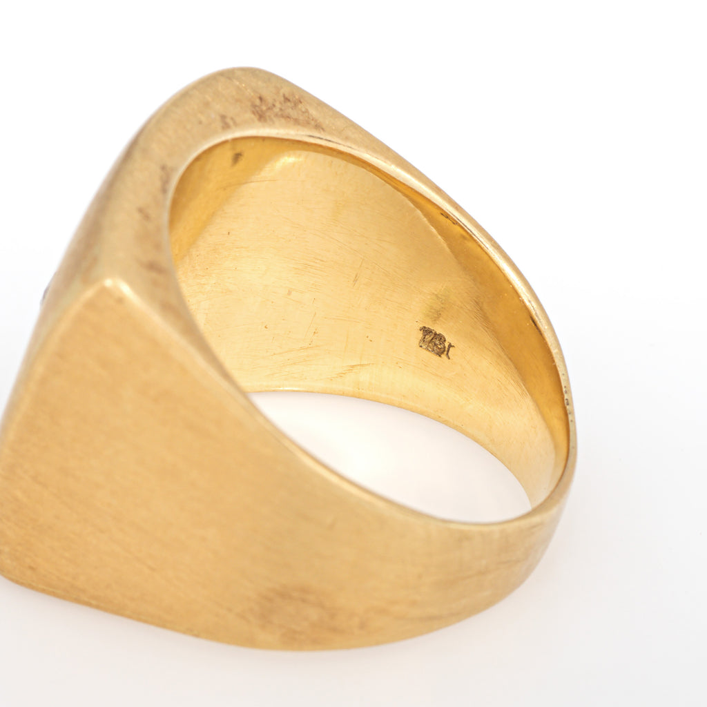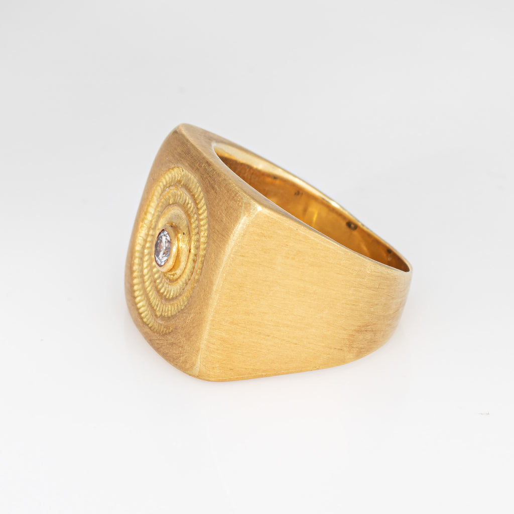 Stylish vintage diamond signet ring crafted in 18 karat yellow gold (circa 1990s).