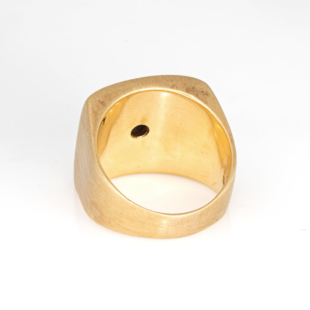 Vintage Diamond Signet Ring Sz 6.5 Square Fossil Design 18k Yellow Gold Jewelry
