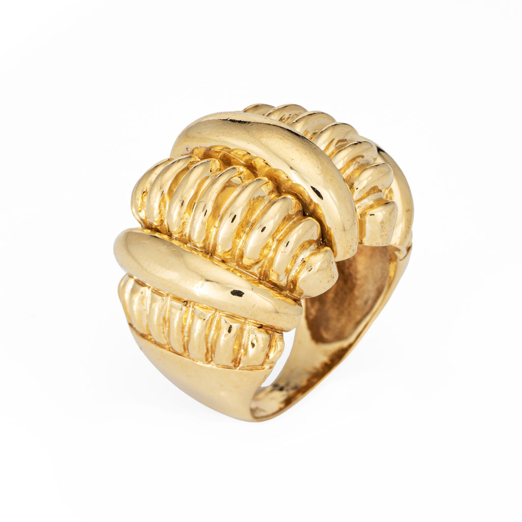 Stylish vintage sculpted dome ring (circa 1980s) crafted in 18 karat yellow gold.