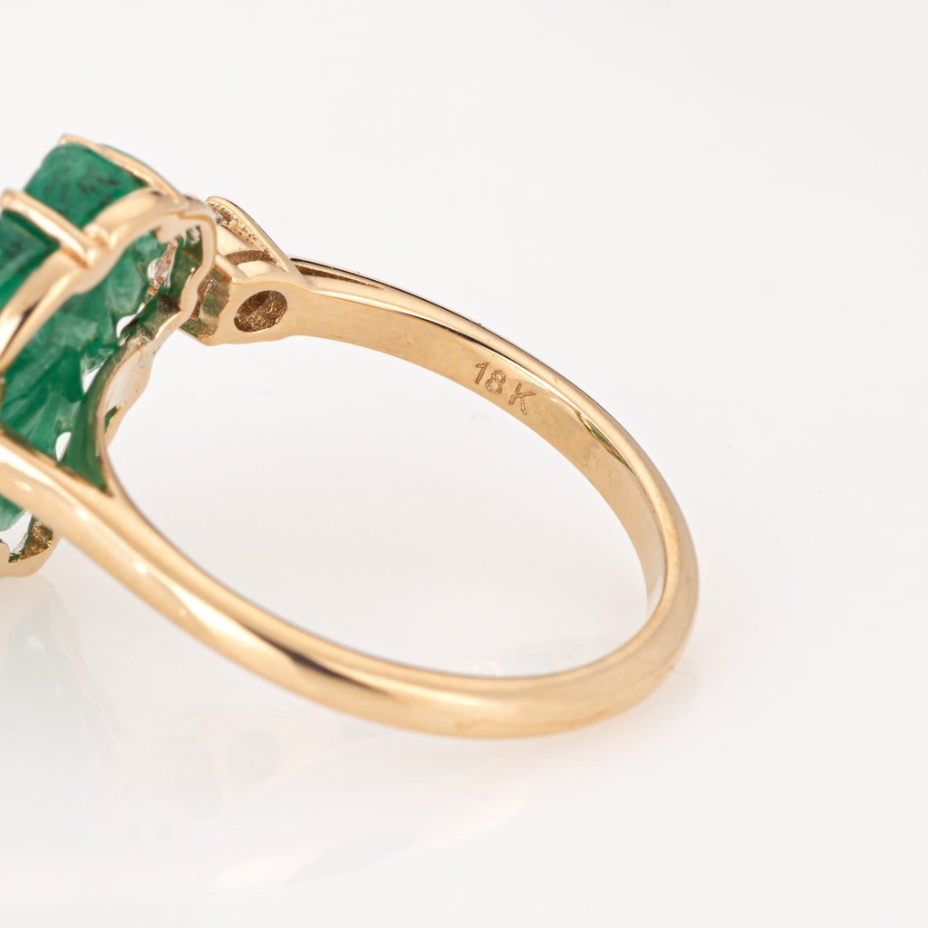 Stylish carved emerald & diamond cocktail ring crafted in 18 karat yellow gold.