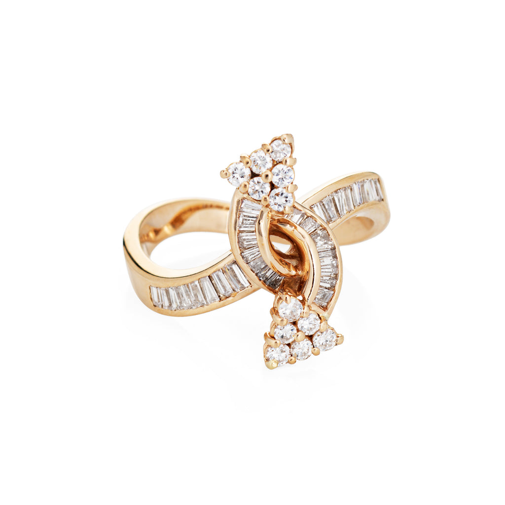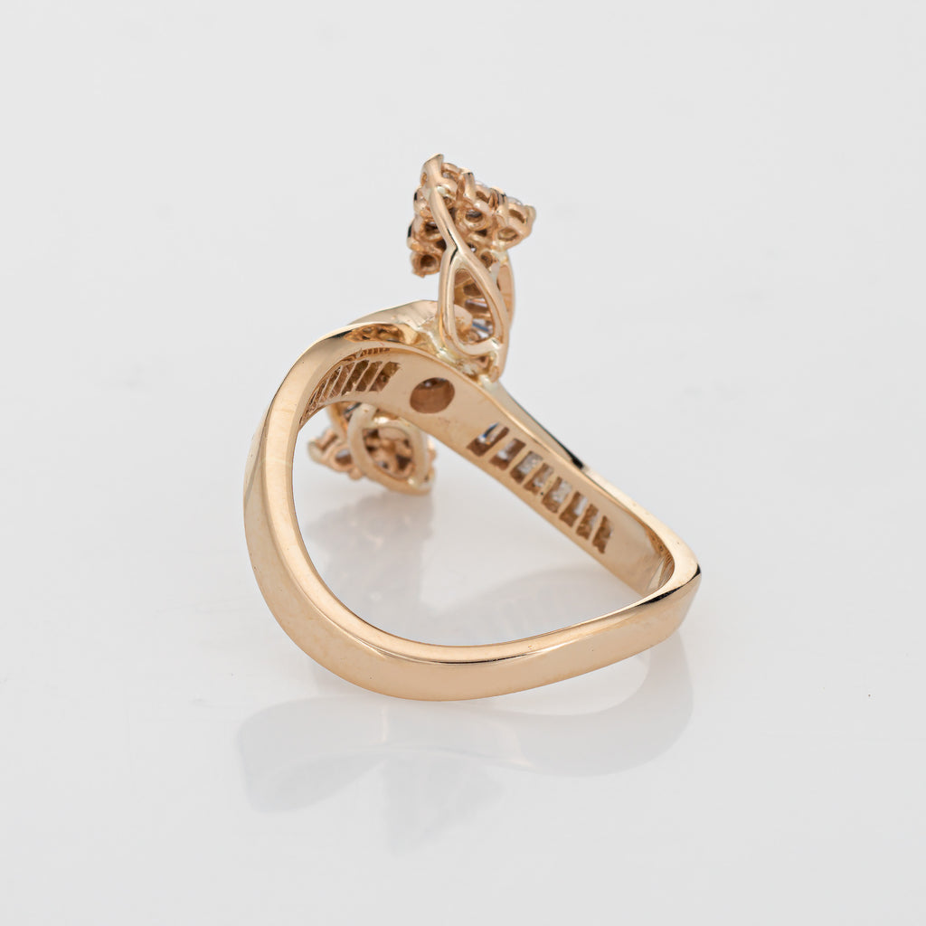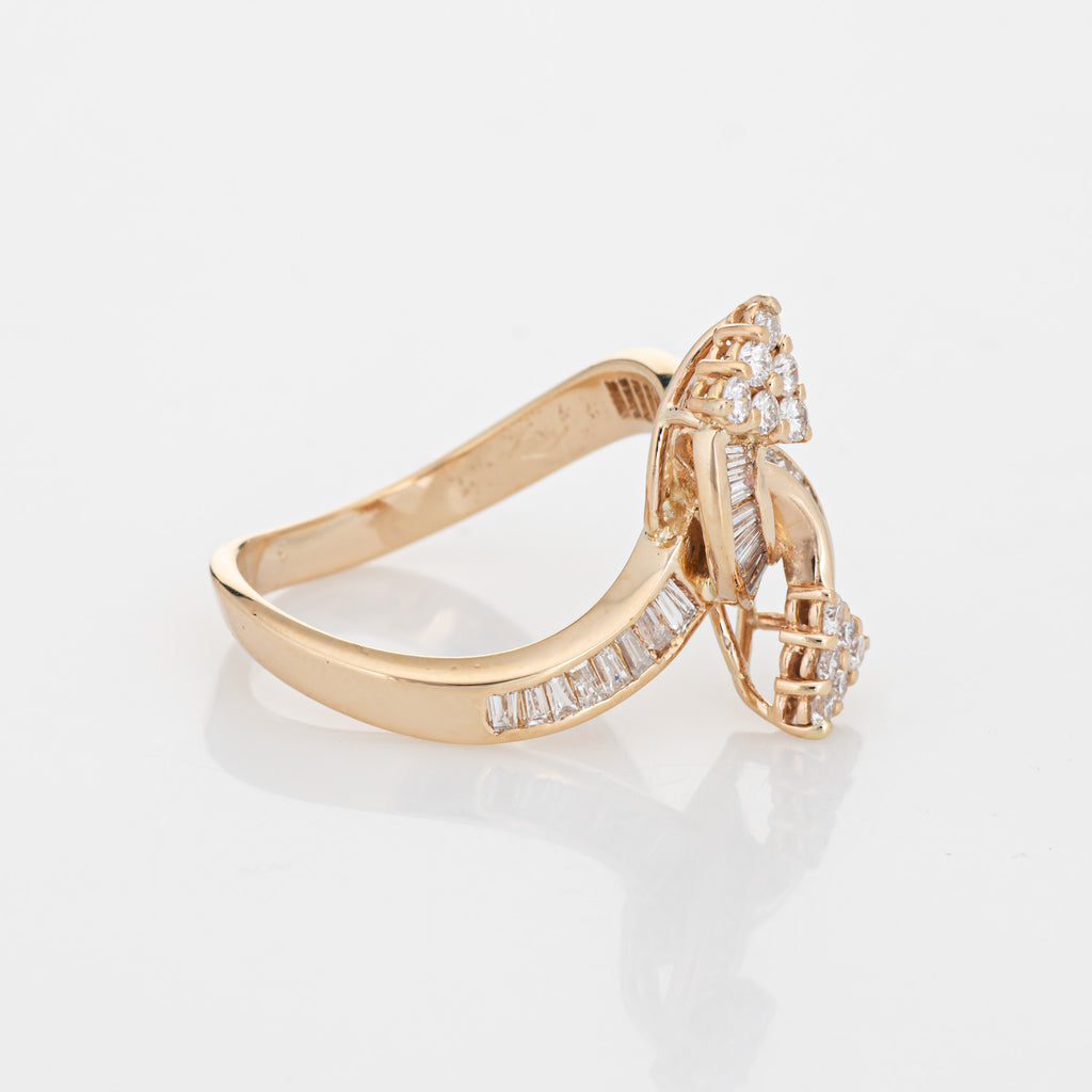 Stylish vintage diamond arrow bypass ring (circa 1990s) crafted in 14 karat yellow gold.