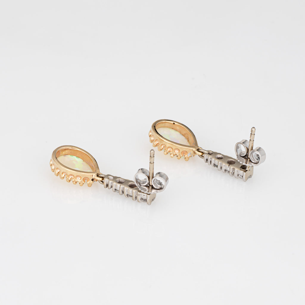 Stylish opal & diamond drop earrings crafted in 14k yellow & white gold.