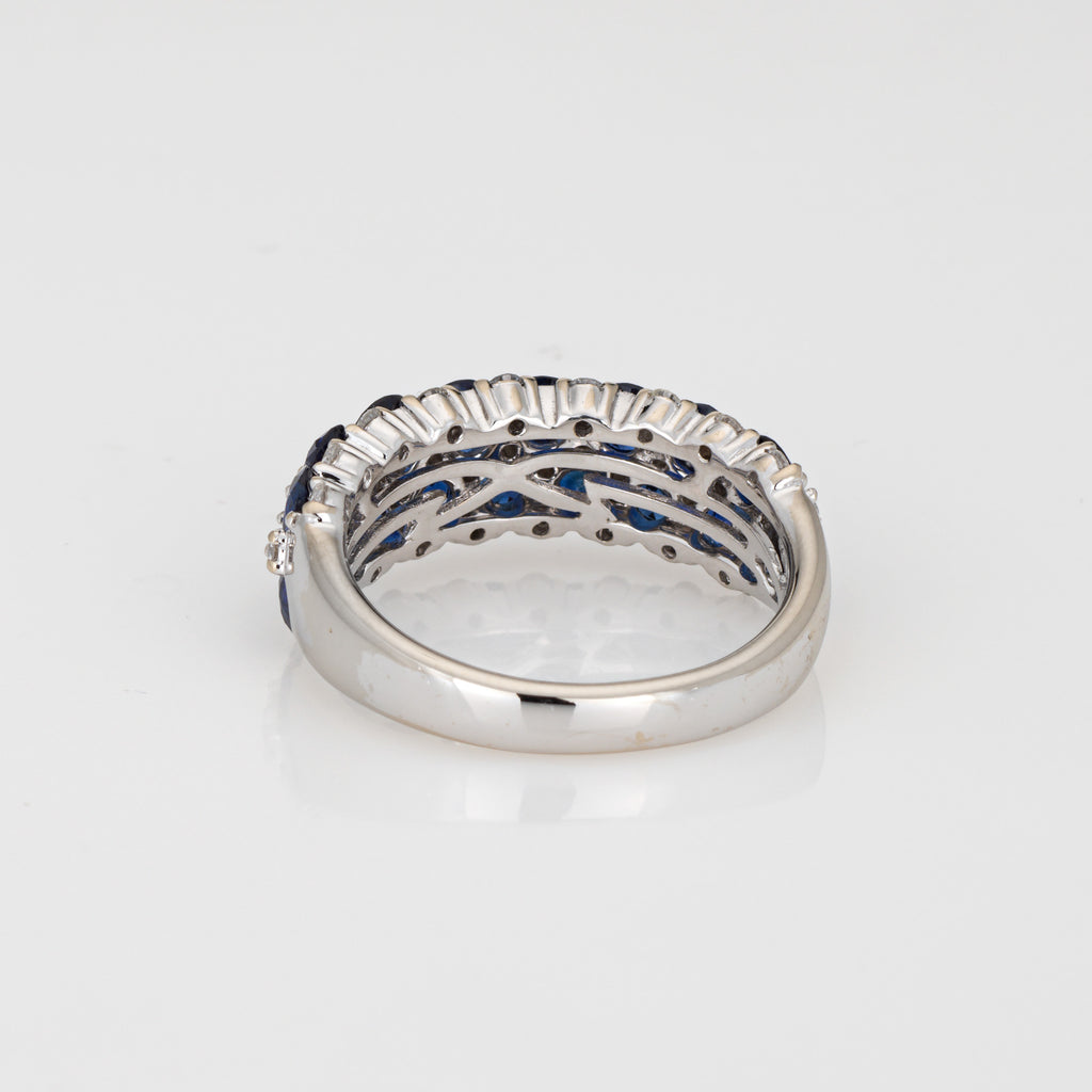 Two rows of shimmering sapphires are accented with small diamonds. The ring is great worn alone or stacked. The low rise ring (4mm - 0.15 inches) sits comfortably on the finger.