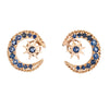 Sparkling blue sapphires adorn the beautiful celestial motif. The earrings are great worn during the day and can easily transition to a glam evening look. The earrings are fitted with post and butterfly backings for pierced ears.