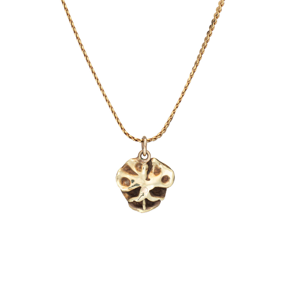 Finely detailed vintage pansy necklace crafted in 14 karat yellow gold (circa 1950s).