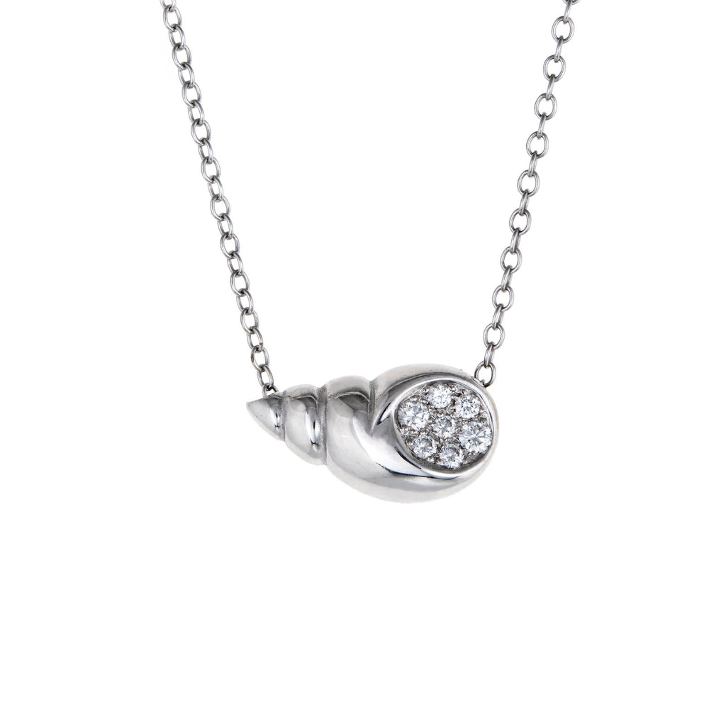 Tiffany & Co Diamond Shell Necklace 18k White Gold Estate Fine Jewelry Pre Owned