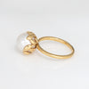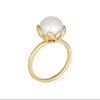 Set with a beautiful freshwater cultured pearl (9.5mm) into a sculpted olive leaf mount, a symbol of peace and abundance. The medium rise ring (11mm - 0.43 inches) sits comfortably on the finger. Ideal worn alone or stacked.