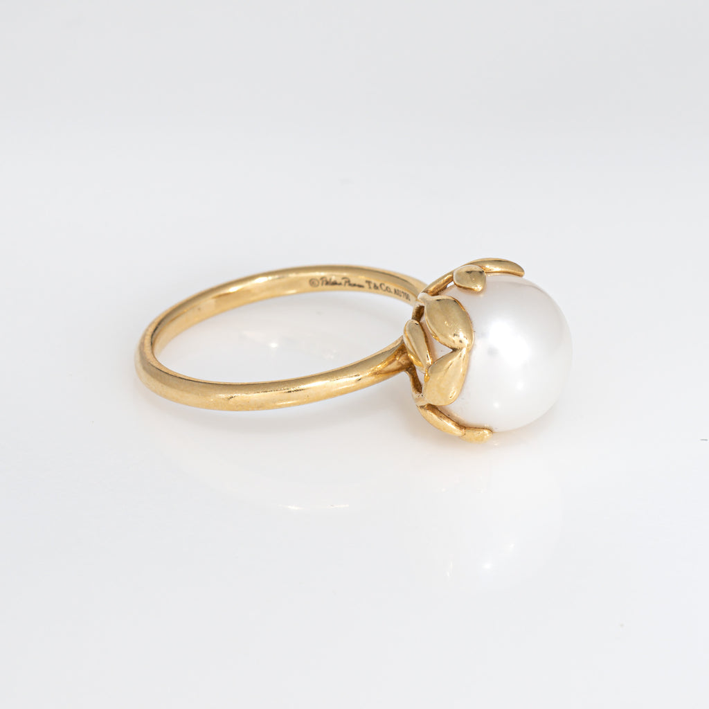 Tiffany & Co Olive Leaf Pearl Ring Estate Sz 6 18k Yellow Gold Paloma Picasso