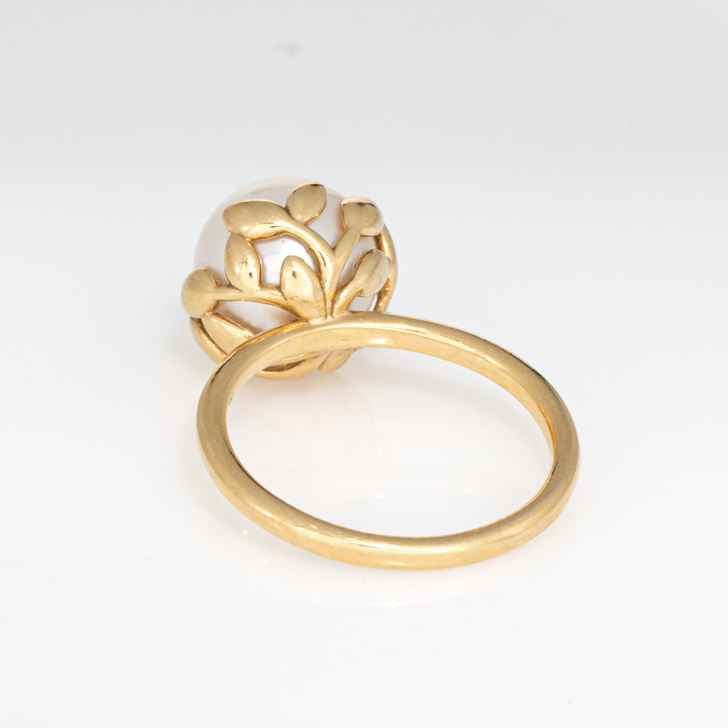 Pre-owned Tiffany & Co 'Olive Leaf' pearl ring crafted in 18 karat yellow gold (circa 2010s).