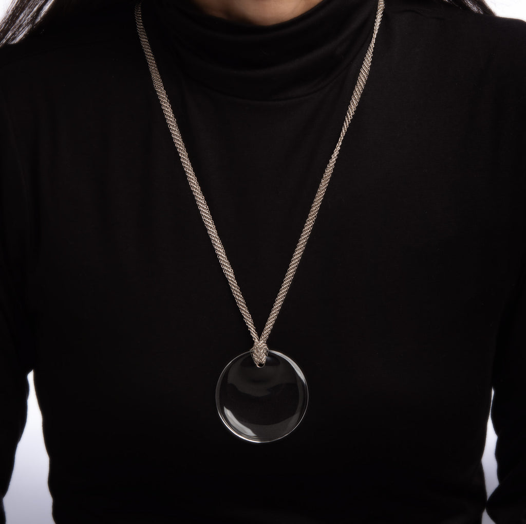 Size & Measurements: The necklace measures 29 inches in length. The rock crystal measures 2 inches diameter.