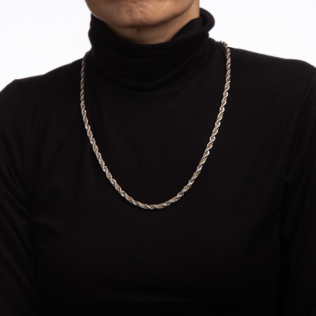 Vintage Tiffany & Co 5mm Rope Necklace Sterling Silver 14k Gold 24" Jewelry