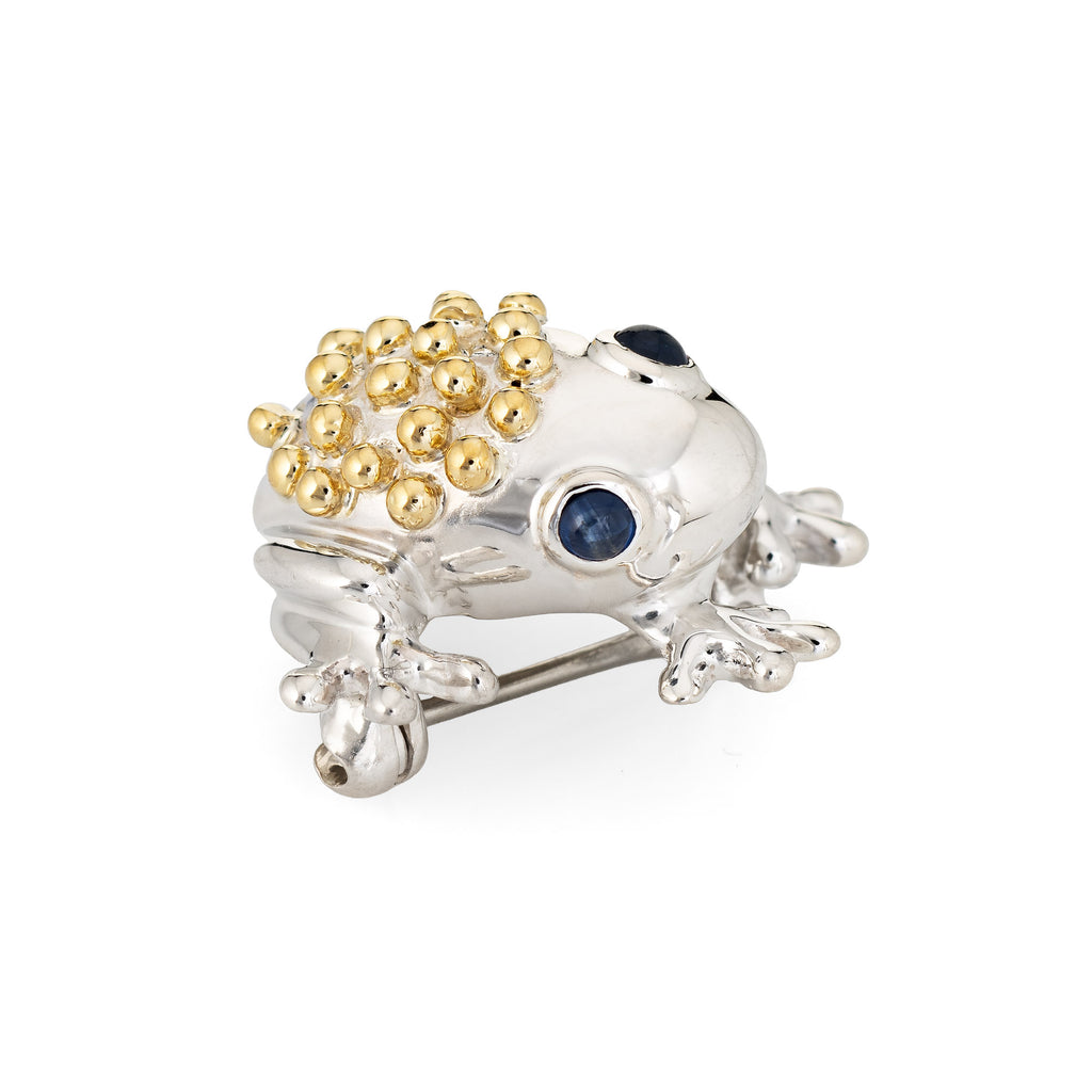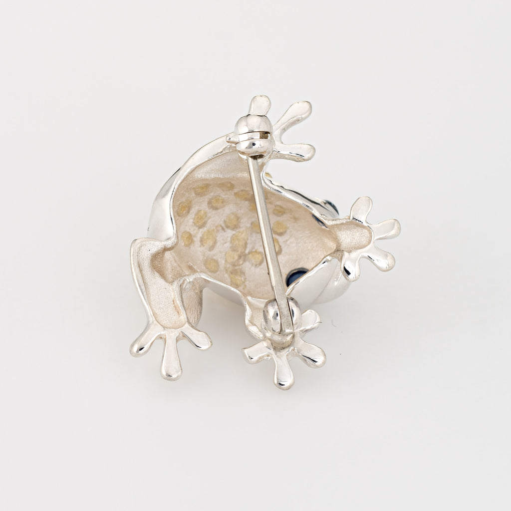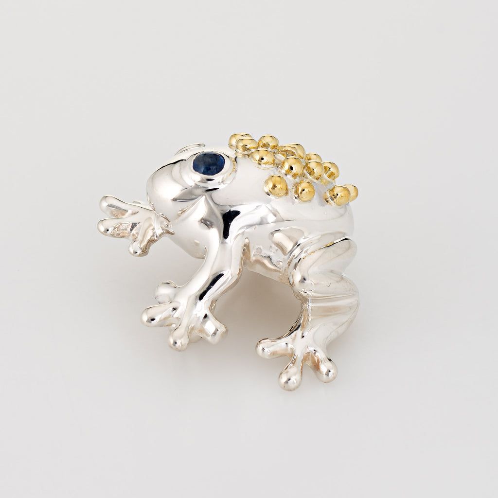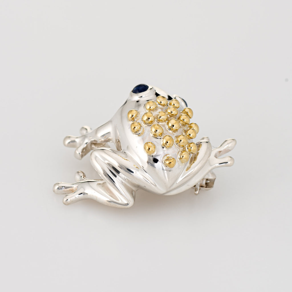 Vintage Tiffany & Co Frog Brooch Sterling Silver 18k Gold Sapphire Eyes Jewelry