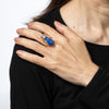 The elaborate insect is set with fluted sodalite to the body, with small diamonds to the head and ruby set eyes. The double wings add dimension to the beautifully made ring. We love how the insect sits perched on your finger. The medium rise ring (15mm - 0.59 inches) sits comfortably on the hand.