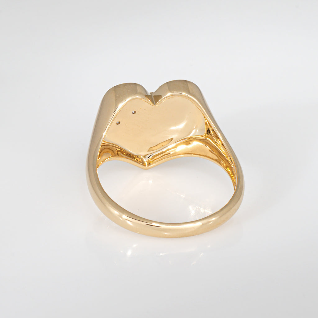 Diamond Owl Heart Ring Signet 14k Yellow Gold Sz 6.5 Fine Jewelry Ruby Eyes